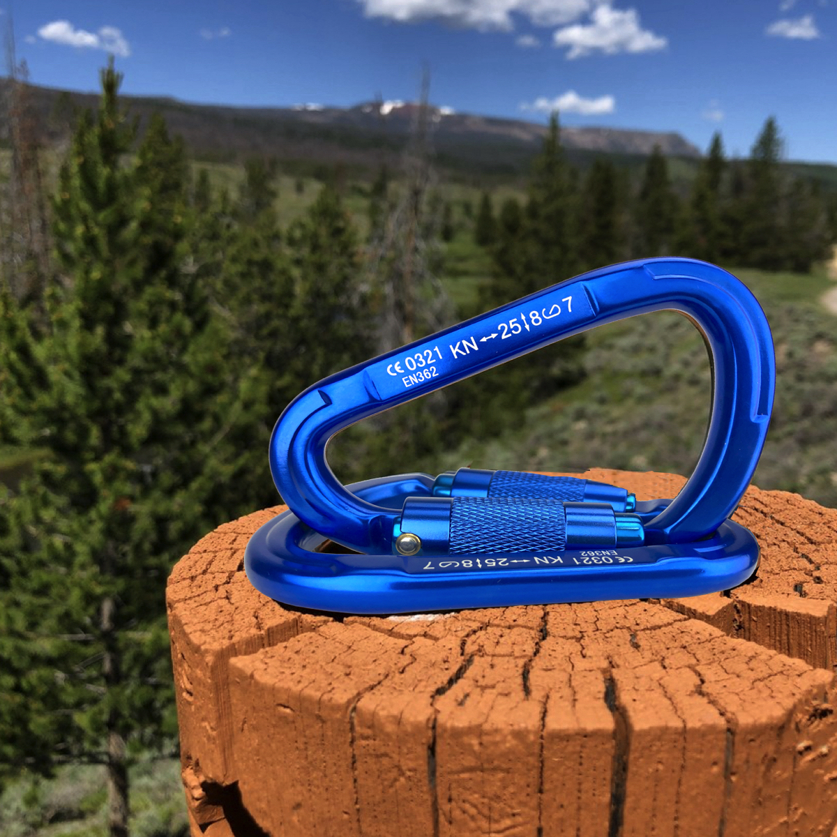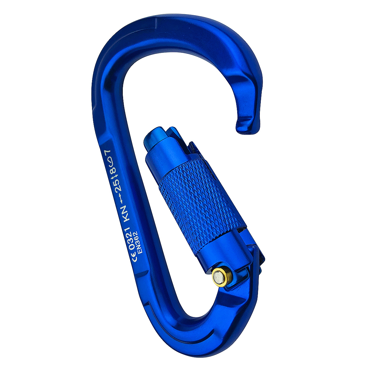 This is a heavy-duty climbing carabiner made from aircraft grade 7075 aluminum alloy. It is heavy-duty and can stand 5,500lbs/25KN pull force. This is a Twist Lock D-Ring carabiner that auto locks for quick use and ease. Rotate the lock by hand to open and lock. The lock mechanism has smooth edges to help protect your ropes and prevent failure. Its compact D shape design measures 5