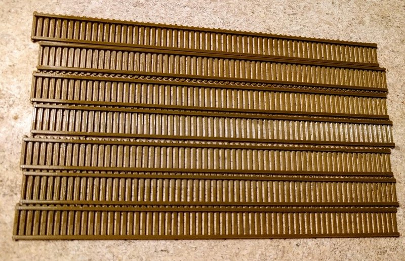 This auction is for 7 sections of HO scale brown picket fence. Each section is 145mm (5.7 inches) long or 41.4 scale feet.