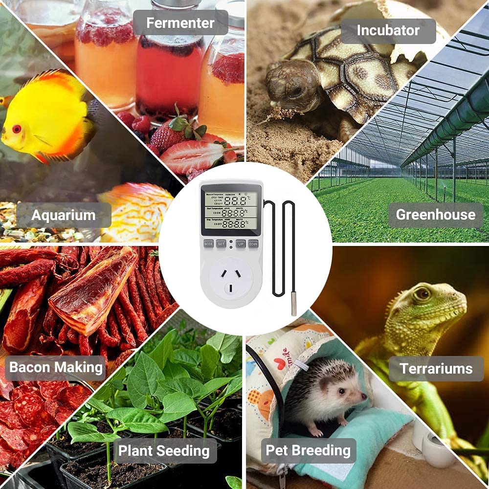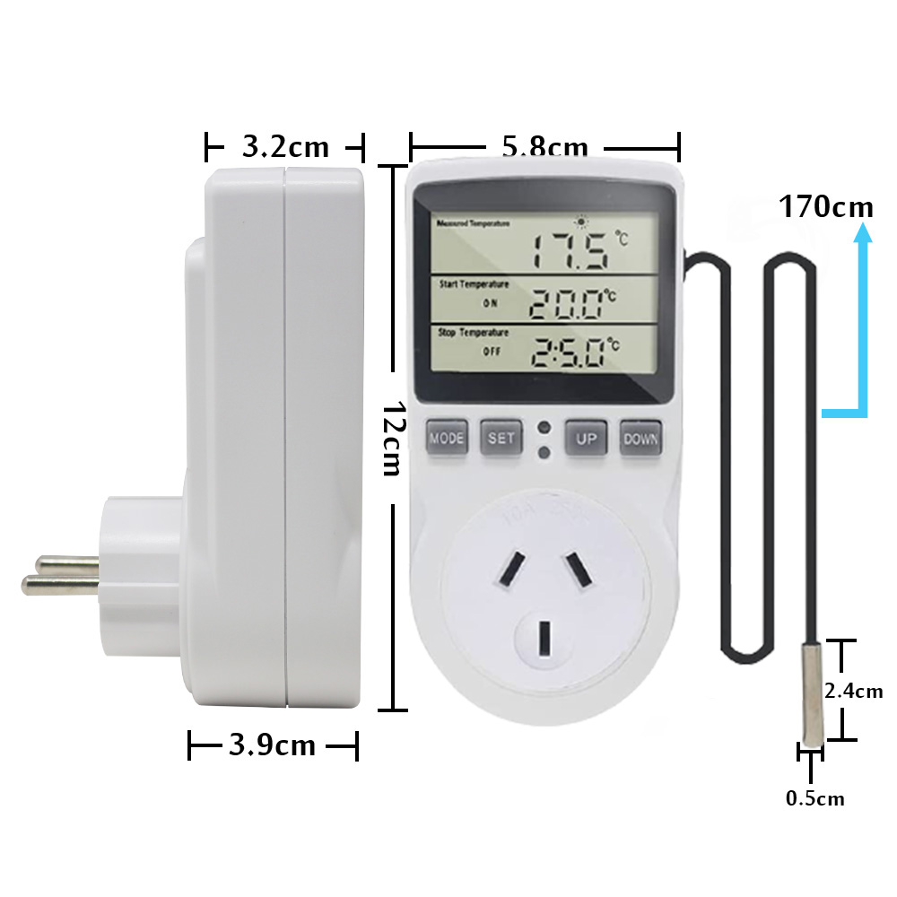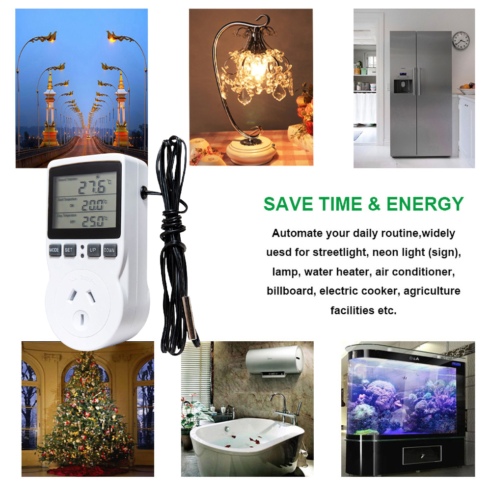 Multi-Function Thermostat Digital Temperature Controller Socket Outlet With Timer Switch Sensor Probe Heating Cooling 10A 240V