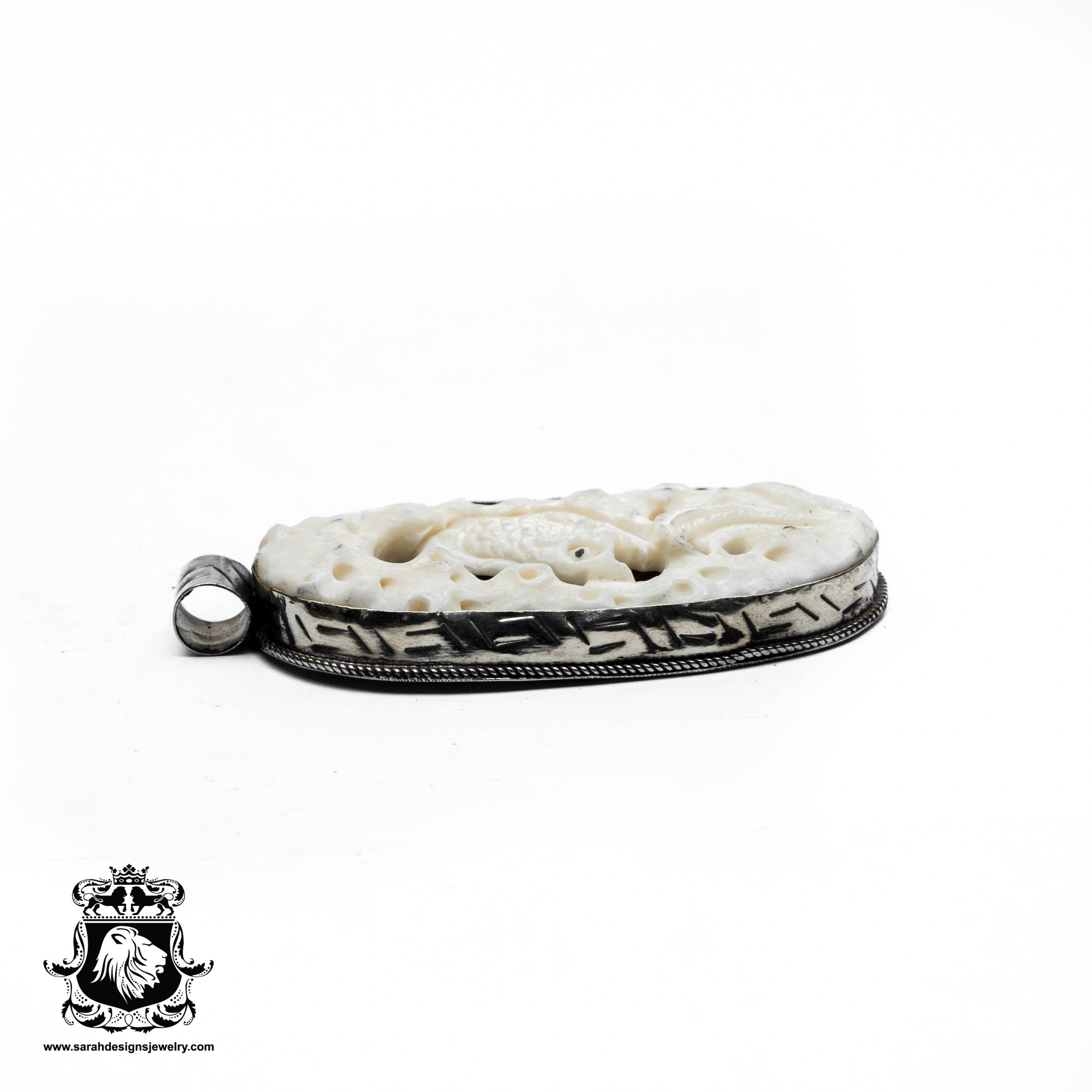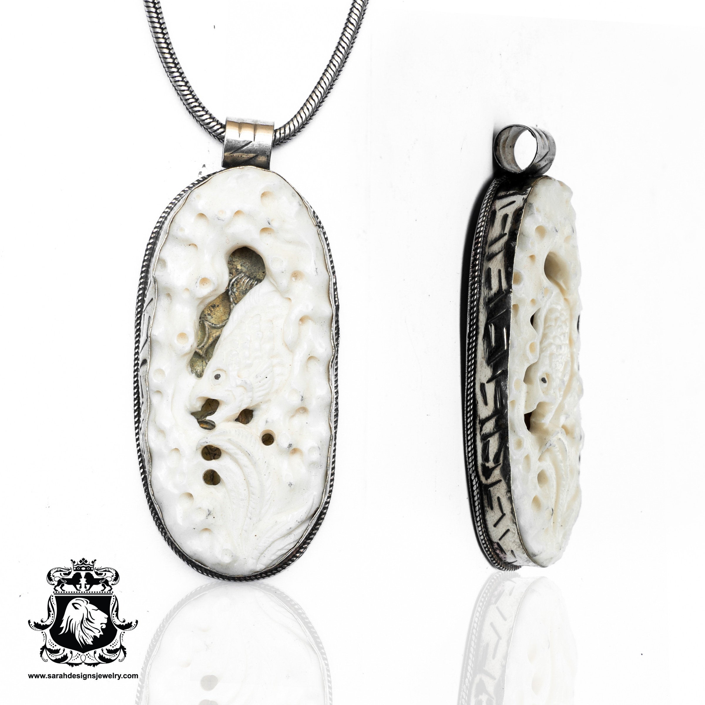 Coral Lurking Electric Eel Tibetan Repousse Silver Pendant 4MM Chain N384