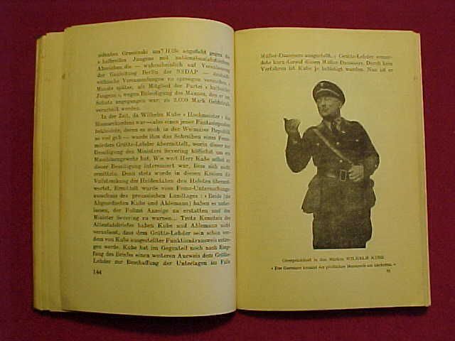 Written in satirical form as a response to the anti-Semitic 'Juden Sehen dich an", (Jews Are Watching You' by Third Reich propaganda ministry official Johann von Leers), the anti-Nazi work includes highly caustic biographies of 33 high ranking Nazis, including Adolf Hitler, Ernst Roehm, Herrmann Goering, Dr. Paul Joseph Goebbels, Rudolf Hess, Dr. Wilhelm Frick, Alfred Rosenberg, R. Walther Darre, among others.