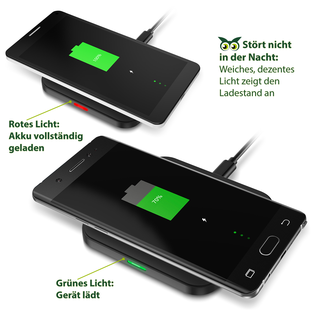 Die Ladestation kann mit allen Für QI fähigen Geräten verwendet werden.