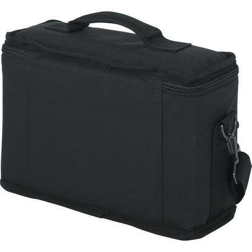The Gator GM-4 4 Drop Mic Bag (Black) is a soft 600 denier nylon padded bag, made to carry up to four microphones with accessories. There is a slot for a belt pack. It has interior storage space with four mic drops and an exterior storage pocket with a zipper slit pocket on the front. The bag is carried by a top handle or an included shoulder strap.