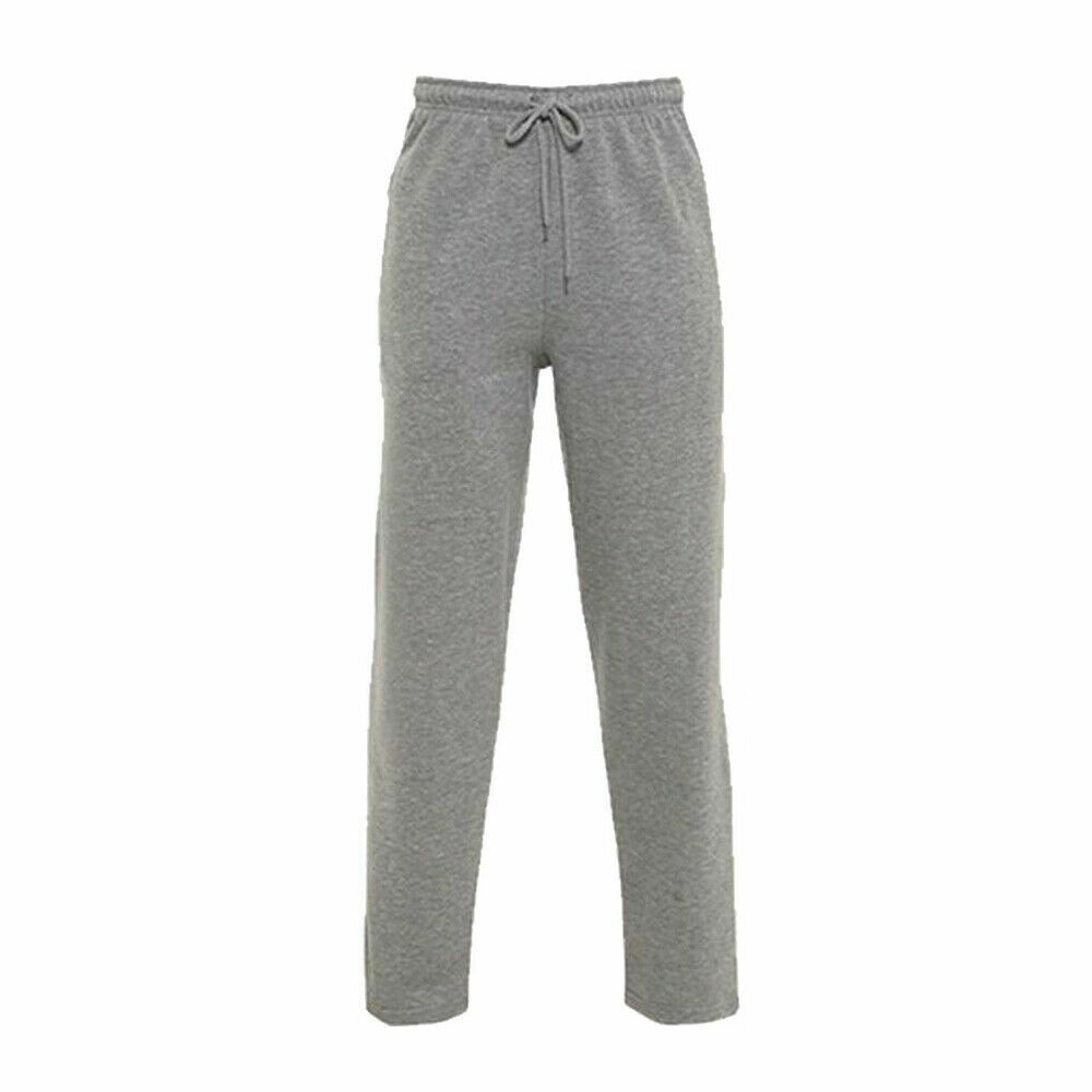 Mens Fleece Joggers Open Hem Bottoms Plain Zip Pocket Track Pants Trousers M-5XL