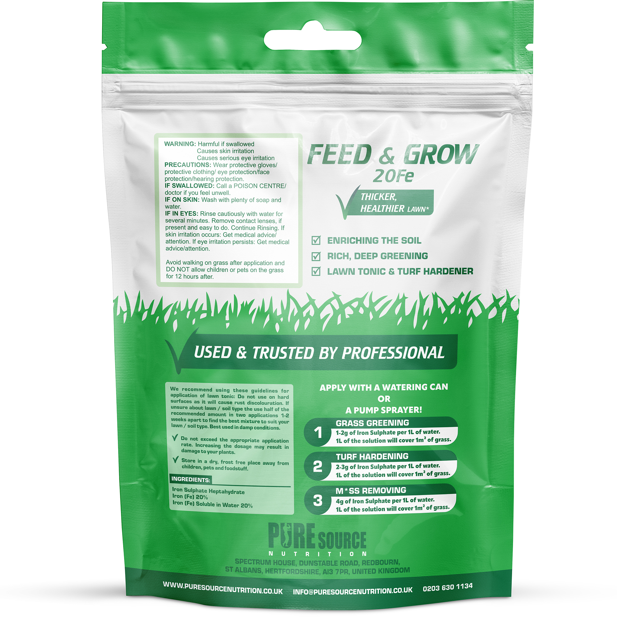 EASY TO USE: Pure Source Nutrition Iron Sulphate is a professional quality product, so it must be tricky to use, right? Simply pop some gloves on, mix the desired amount of your product with the correct amount of water and you’re good to go! or you can sprinkle the powder on the grass as well.