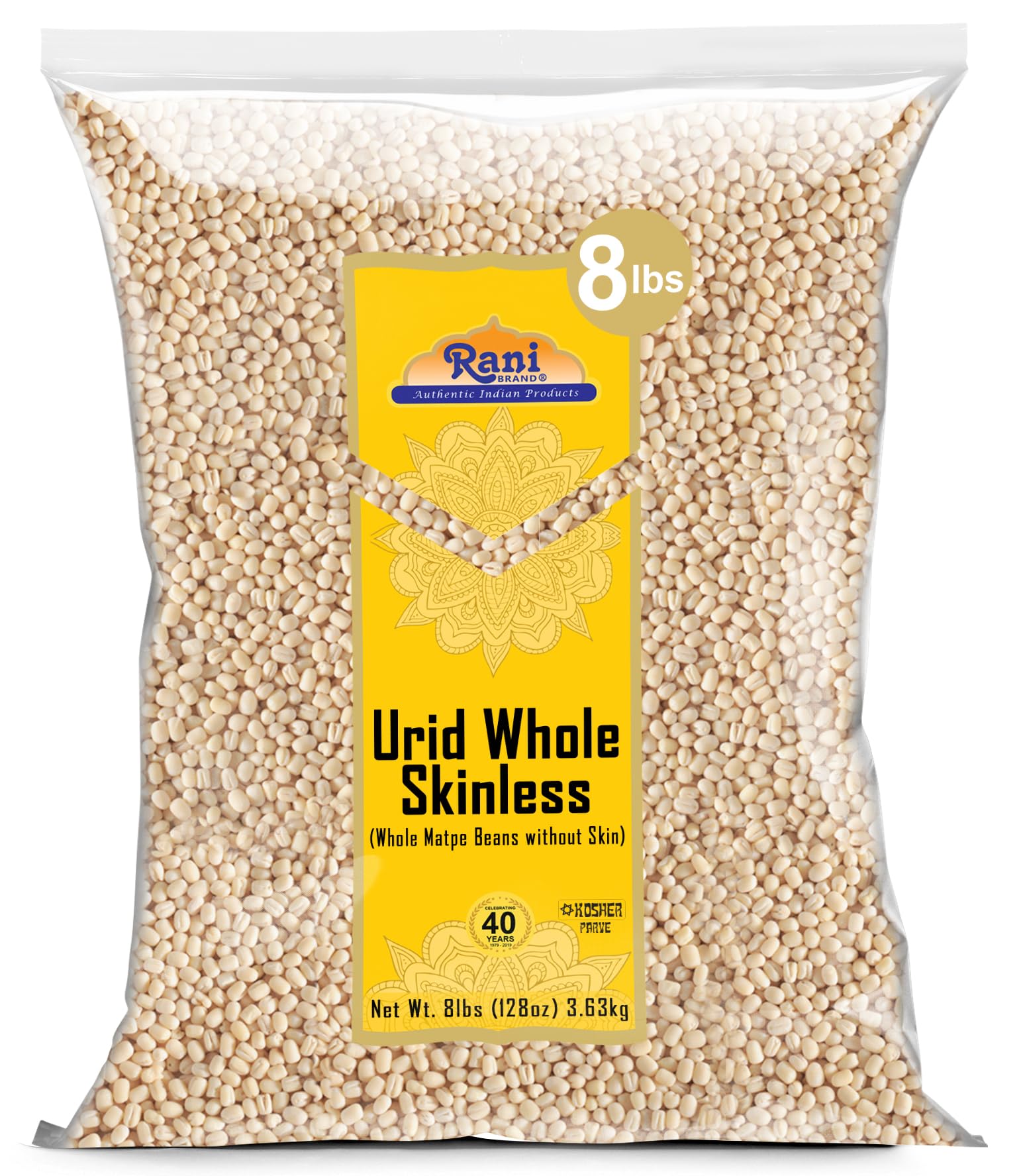 Rani Urid / Urad Whole Gota White (Matpe Beans Skinless) Indian Lentils, 128oz (8lbs) 3.63kg Bulk ~ All Natural | Gluten Friendly | NON-GMO | Kosher | Vegan