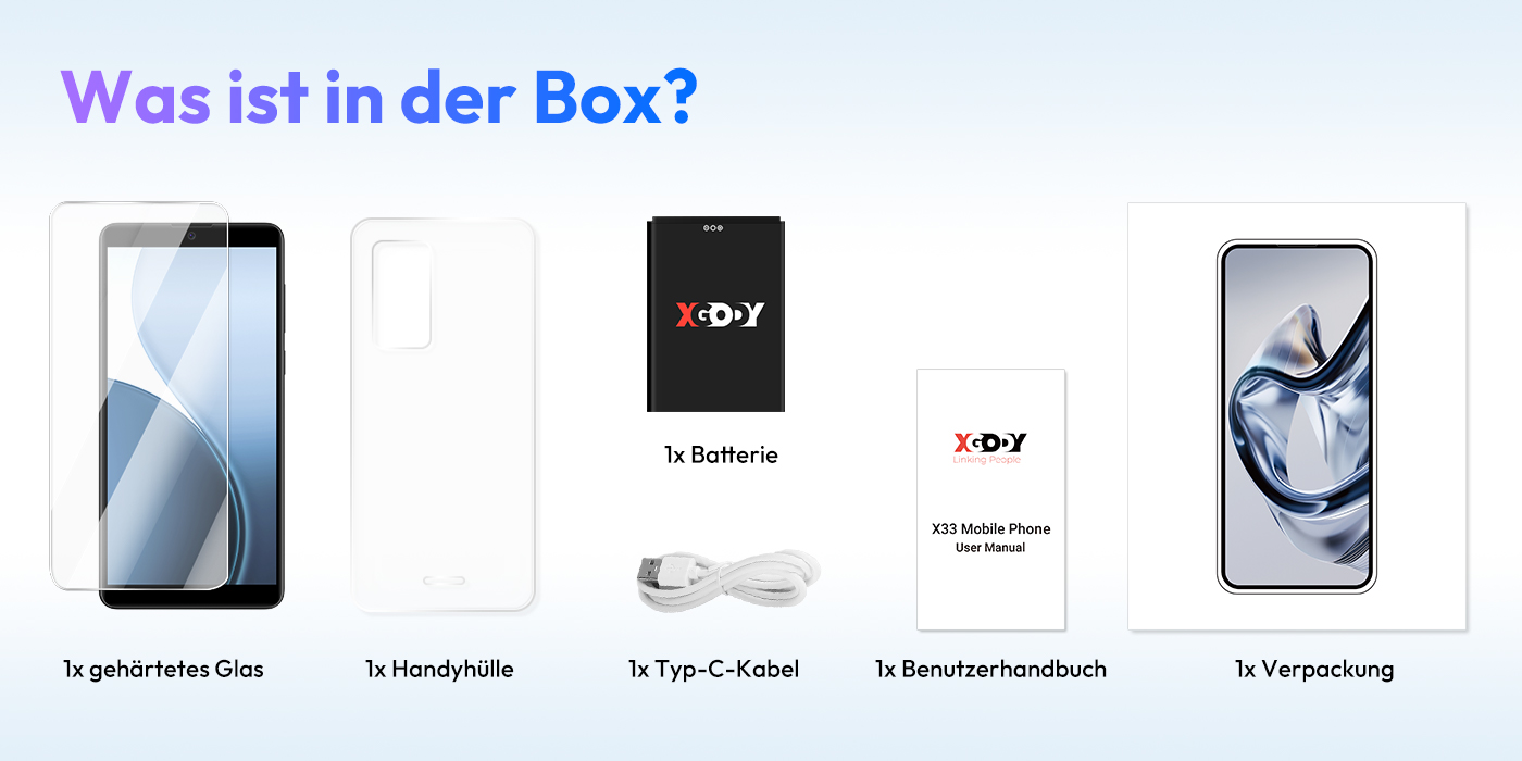 4G Telefon Dual SIM Dual Standby XGODY X33 ist ein 4G android handy, und mit 4G genießen Sie weniger Latenz und schnellere Reaktionszeiten beim Surfen im Internet. Die ganze Welt ist an Ihren Fingerspitzen.Unterschiedliche Gebiete haben unterschiedliche Frequenzbänder, daher bieten wir Ihnen mehr Auswahlmöglichkeiten.