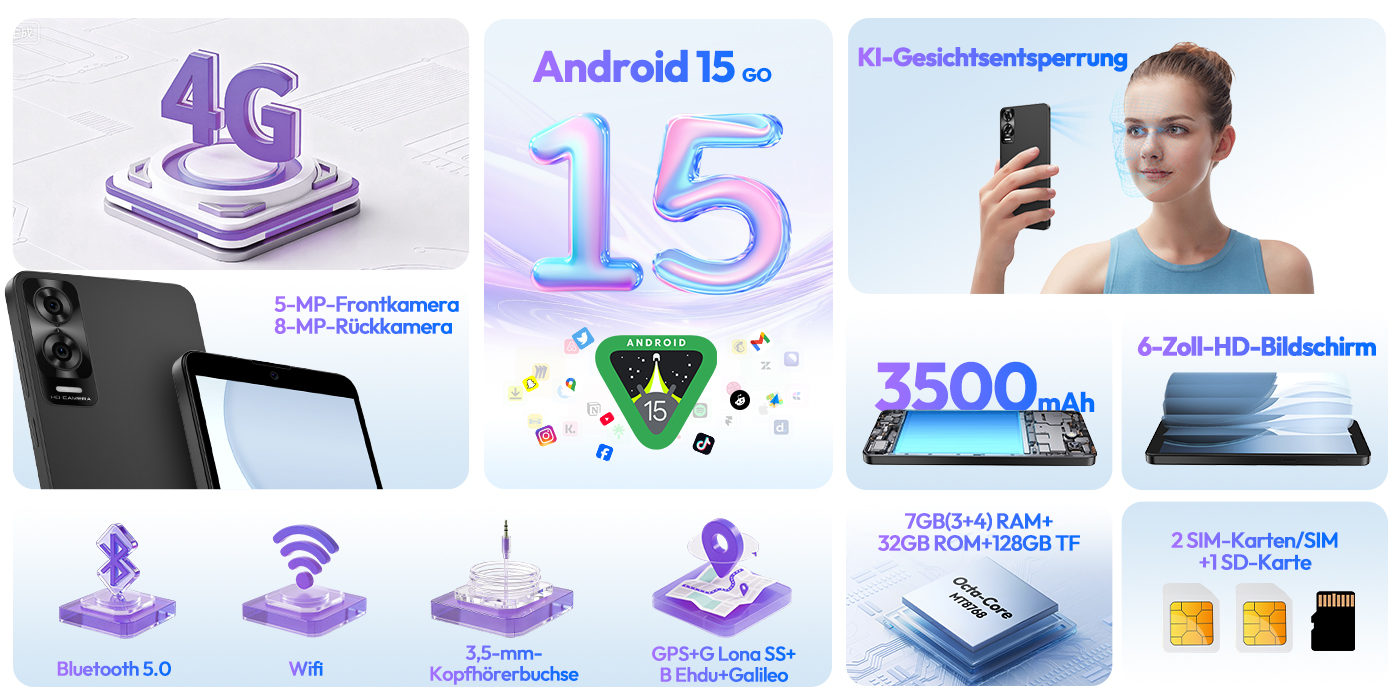 【8 MP-Hauptkamera + 4G LTE Dual Standby】 |