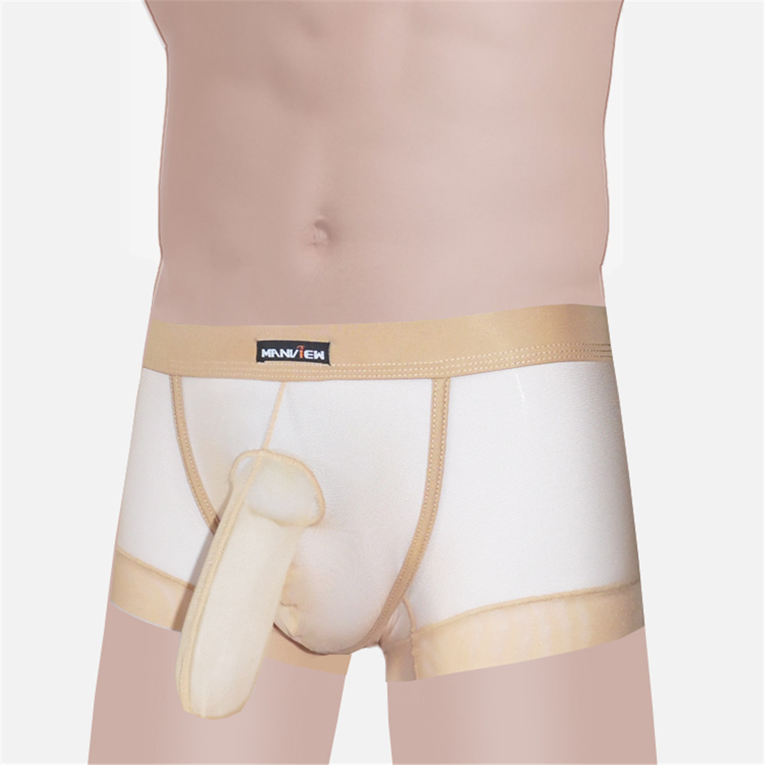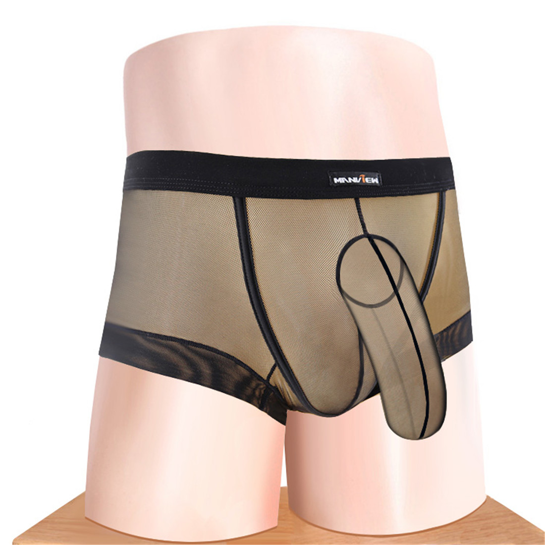 Men Underwear Long Pouch Sleeve Sexy Mesh Boxer Briefs/Trunks M/L/XL/XXL