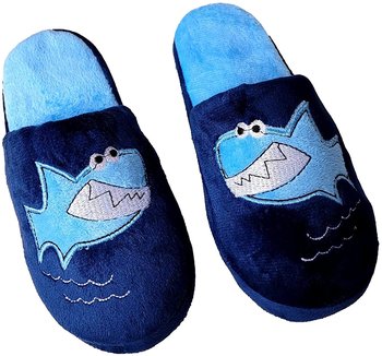 - These sporty fun sharky theme slippers are perfect to wear around the house or around a hotel when traveling. The closed toe, slide style slippers are easy for your child to slip on and off by themselves.