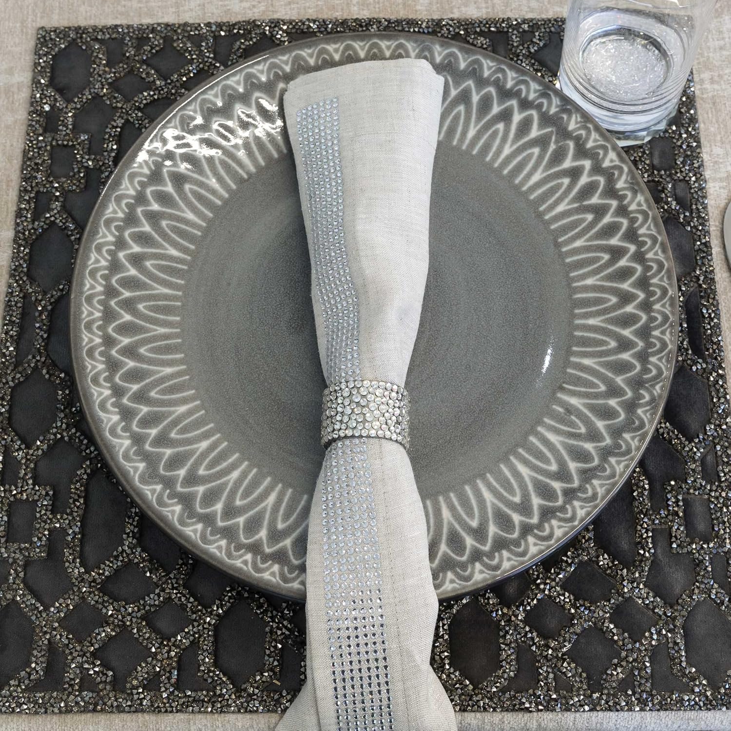 VELVET WITH RESIN RHINESTONES PLACEMATS: These elegant and luxurious rhinestones square placemat for tables from Sparkle Home are designed not only to protect your expensive wooden table but to showcase your dinnerware and make your table setting look impeccable. It adds a unique character to the dinner table.