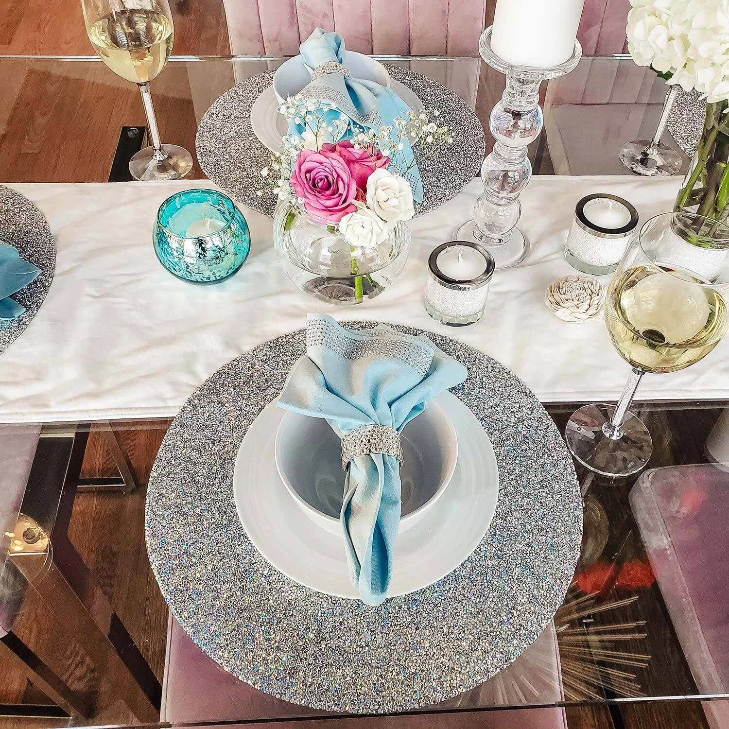 RESIN RHINESTONES PLACEMATS: These elegant and luxurious rhinestones round placemat for tables from Sparkle Home are designed not only to protect your expensive wooden table but to showcase your dinnerware and make your table setting look impeccable. It adds a unique character to the dinner table.