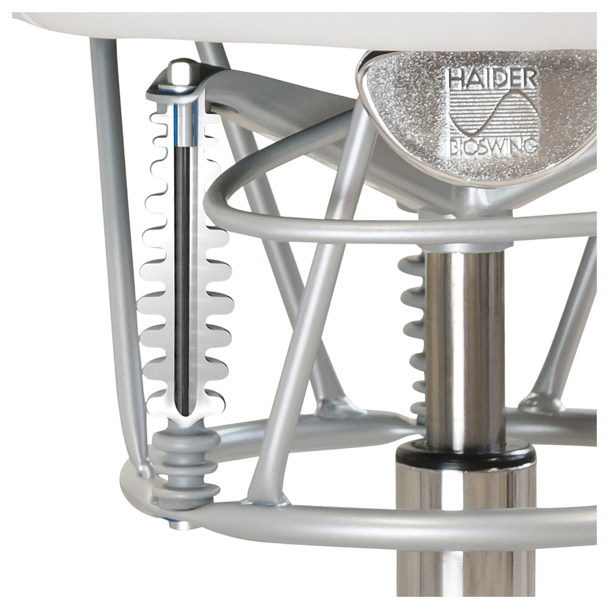 Die Dämpfungselemente sorgen für ein weiches, gedämpftes und damit unbewusst kontrollierbares Schwingverhalten der Sitzfläche.