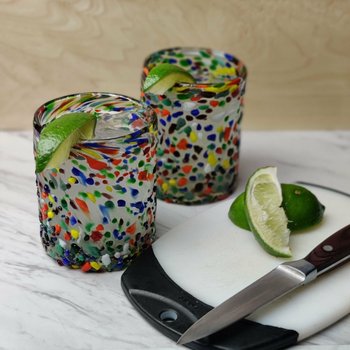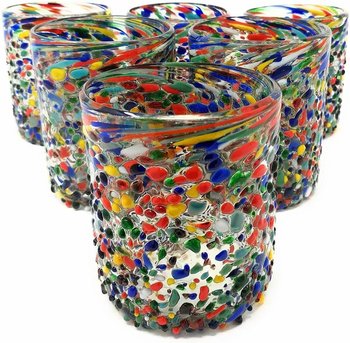 Hand Blown Mexican Drinking Glasses – Set of 6 Confetti Rock Tumbler Glasses...