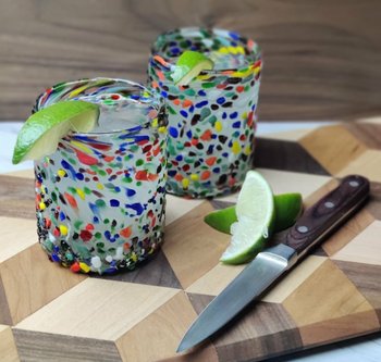 This traditional set of 6 tumbler glasses with a confetti rock design is perfect for your next fiesta!