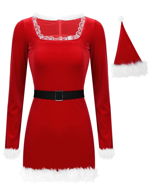 Women Girls Santa dress Mrs Claus costume dress, pull on closure.
