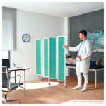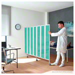 Die flexible Faltwand mit Wandbefestigung, einsetzbar als Sichtschutz und Raumteiler im Kranken- und Pflegebereich. Zu den Vorzügen der Faltwand zählt eine freundliche Atmosphäre durch blickdichtes aber lichtdurchlässiges Füllmaterial aus Plexiglas. Platzsparend faltbar und in Sekundenschnelle wieder einsatzbereit.