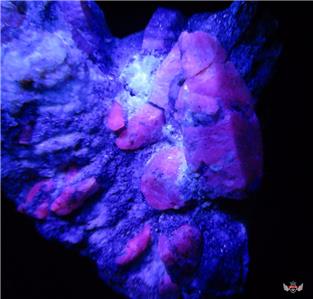 THERE IS OVER 15 RUBY`S AND SAPPHIRE VARIES IN SIZE 7MM. UP TO 39MM. IN NEPHELINE MICA MATRIX. THE BIGGEST CRYSTAL IS ALMOST AS THICK AS MY FINGER. SOME PICTURES HAS BEEN TAKEN UNDER UV LITE.