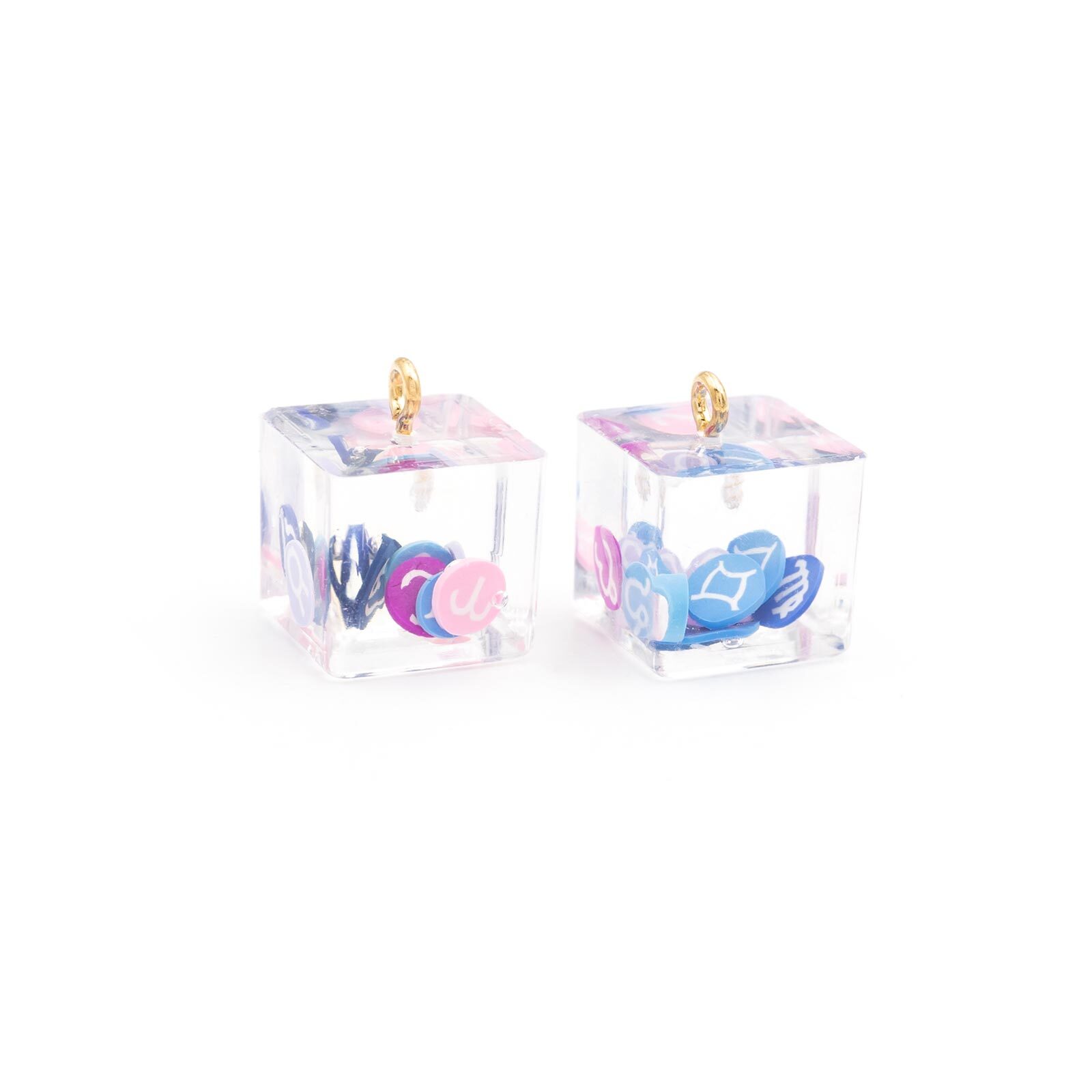 Diese Anhänger aus Resin als Würfel, gefüllt mit Sternzeichen aus Polymer eignen sich für die verschiedensten DIY Schmuck Projekte. Hänge die Anhänger mit Hilfe eines Biegerings an einer Kette oder an einem Paar Ohrringe auf.