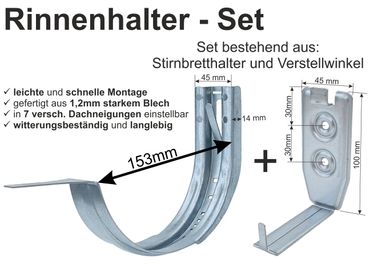 verzinkter Stirnbretthalter für Dachrinne 333/6-tlg. verstellbar 8-44° verstärkt BESTSELLER