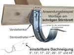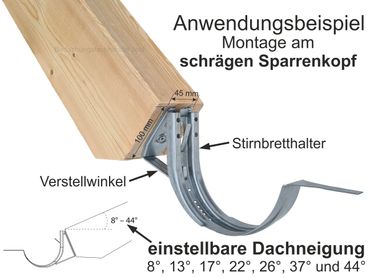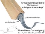 - Die Verstellwinkel mit Gefälle an schräges Stirnbrett oder schrägen Sparrenkopf schrauben.