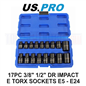 3/8" Drive Impact E Torx Sockets : E5, E6, E7, E8, E10, E12, E14, E16