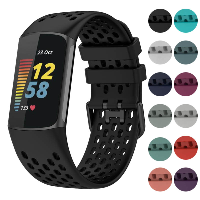 StrapsCo’s rubber strap for Fitbit Charge 5 is made with a heavy duty silicone and comes in bold, contrasting colors. The strap is breathable, easy to clean and can keep up with the busiest lifestyles. This strap features a perforated strap with contrasting colors.