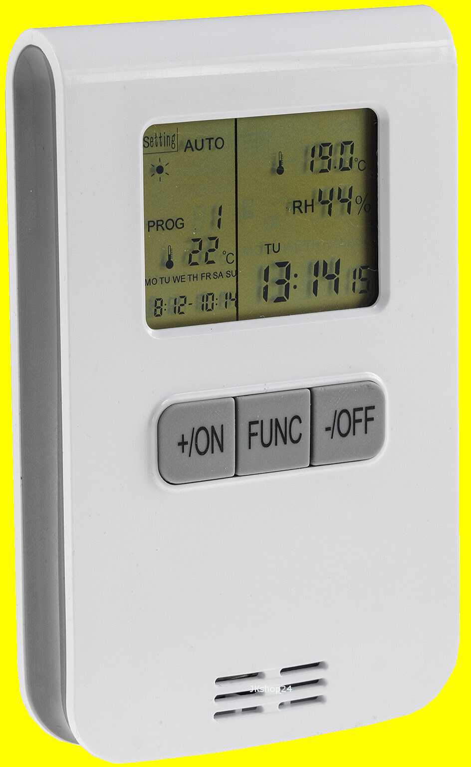 Steuern Sie Ihre Pilota Casa Empfänger ab jetzt auch temperaturgesteuert. Viele verschiedene Einstellmöglichkeiten wie z.B. Heiz - oder Kälte Vorwahl, bis zu 8 verschiede Programme für Wochen -oder Tageseinstellungen mit jeweils individueller Temperatur möglich oder manueller Schaltung der Empfänger. Zusätzlich Anzeige der Luftfeuchtigkeit im Display.