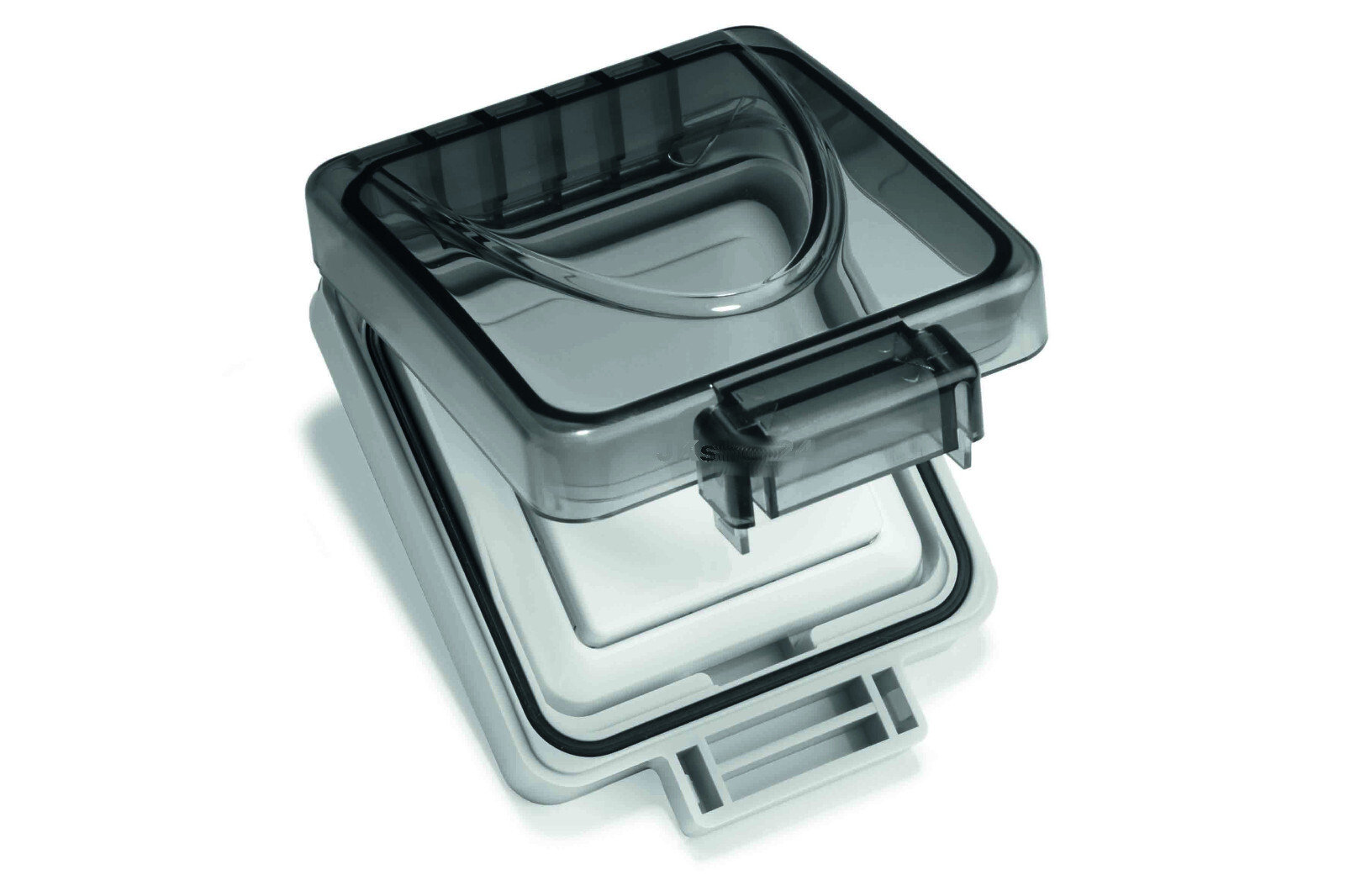 Wetterschutz-Kunststoffgehäuse mit milchglas-transparentem Deckel, ideal für den wettergeschützten Ausseneinsatz/Aufbewahrung von Intertechno-Empfängern/Sendern etc.