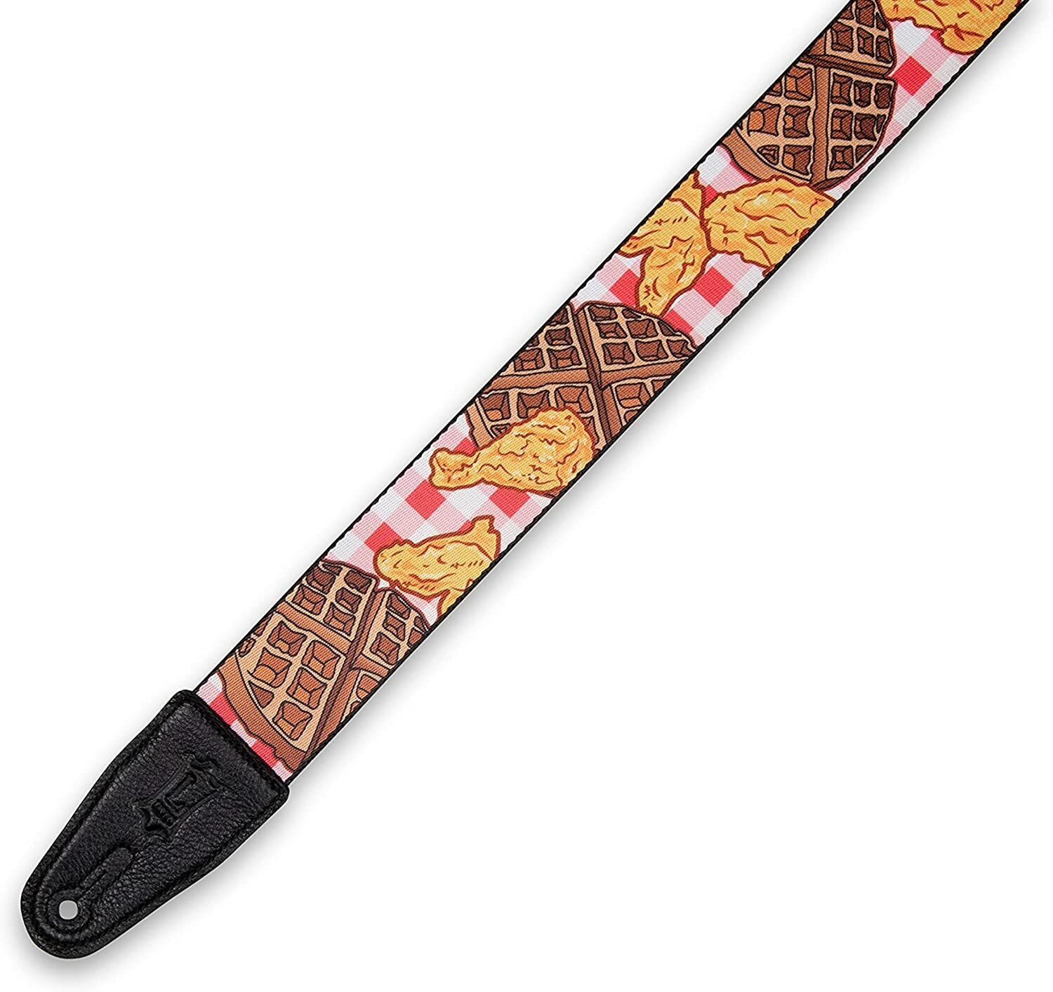 - 2-Inch Wide Polyester Guitar Strap with Chicken & Waffles Design