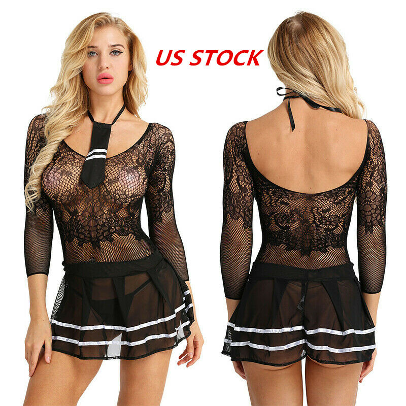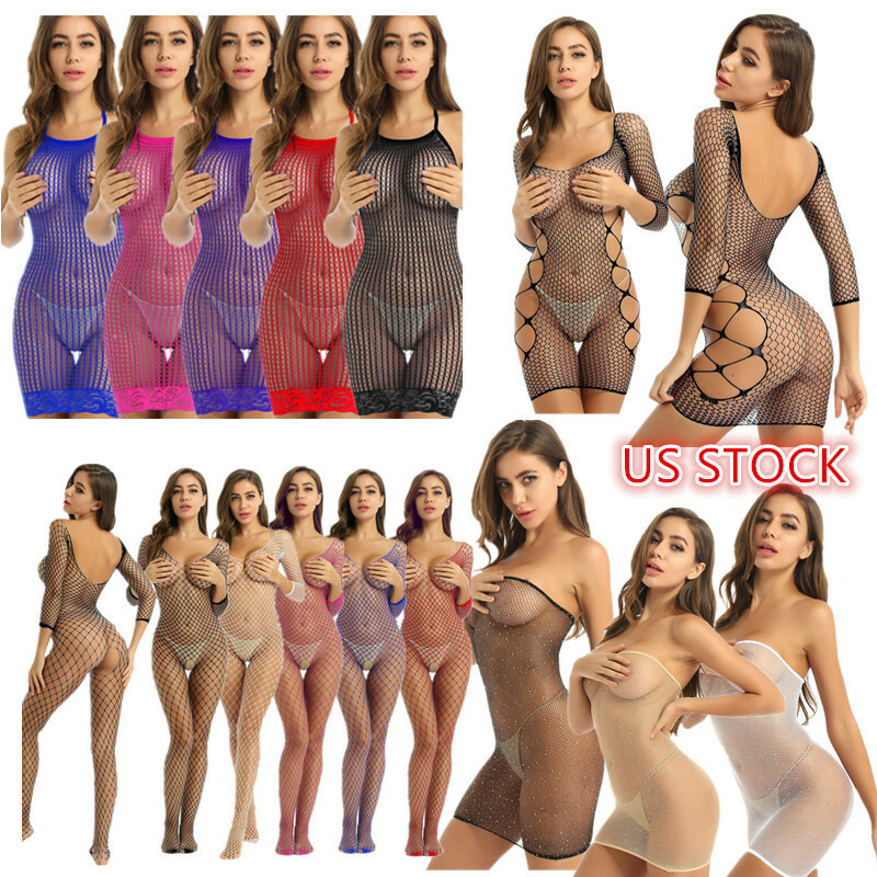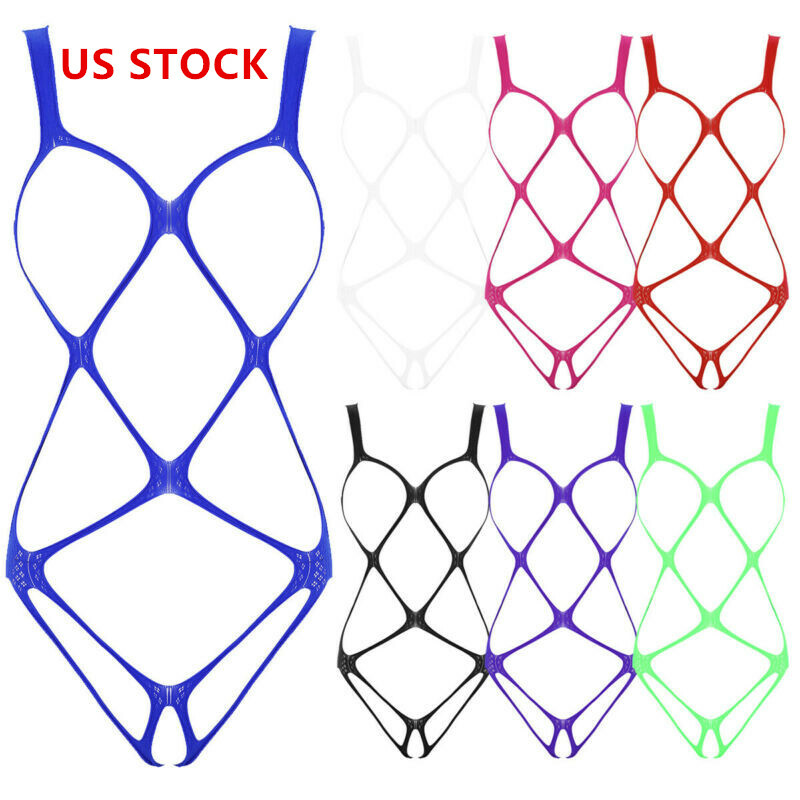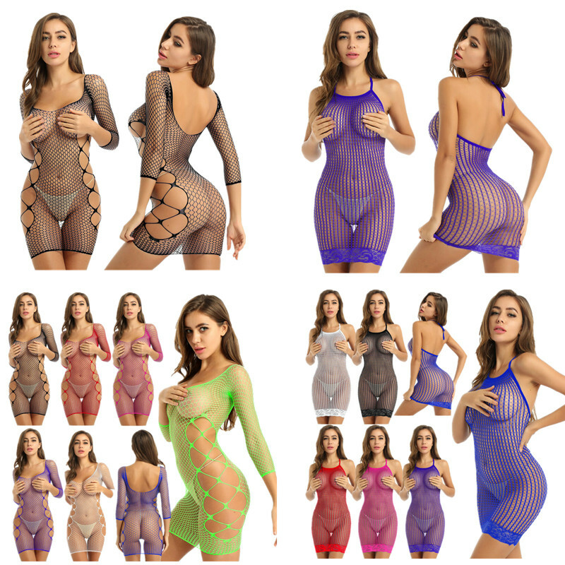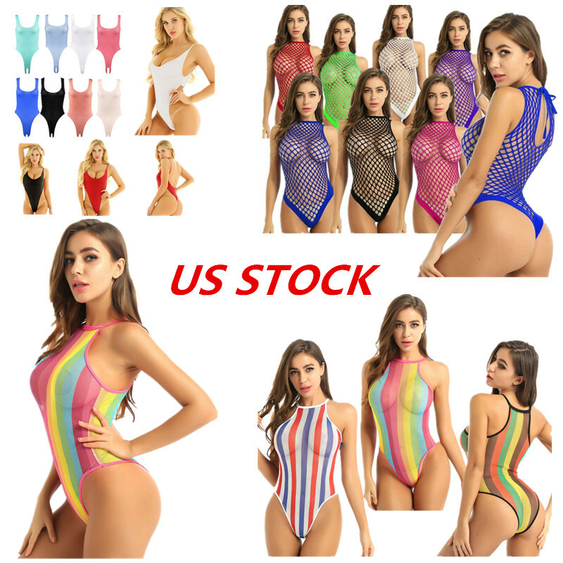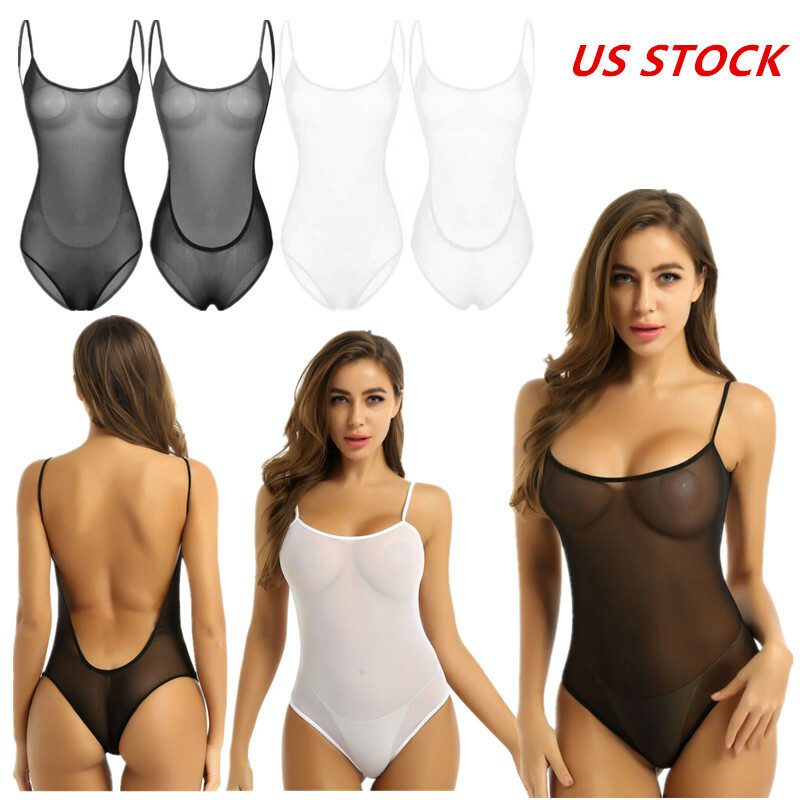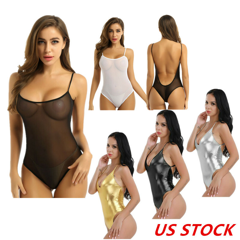 Womens See-through Mesh Crotchless Bodysuit Hollow Out Halter Backless Leotard Lingerie Nightwear.