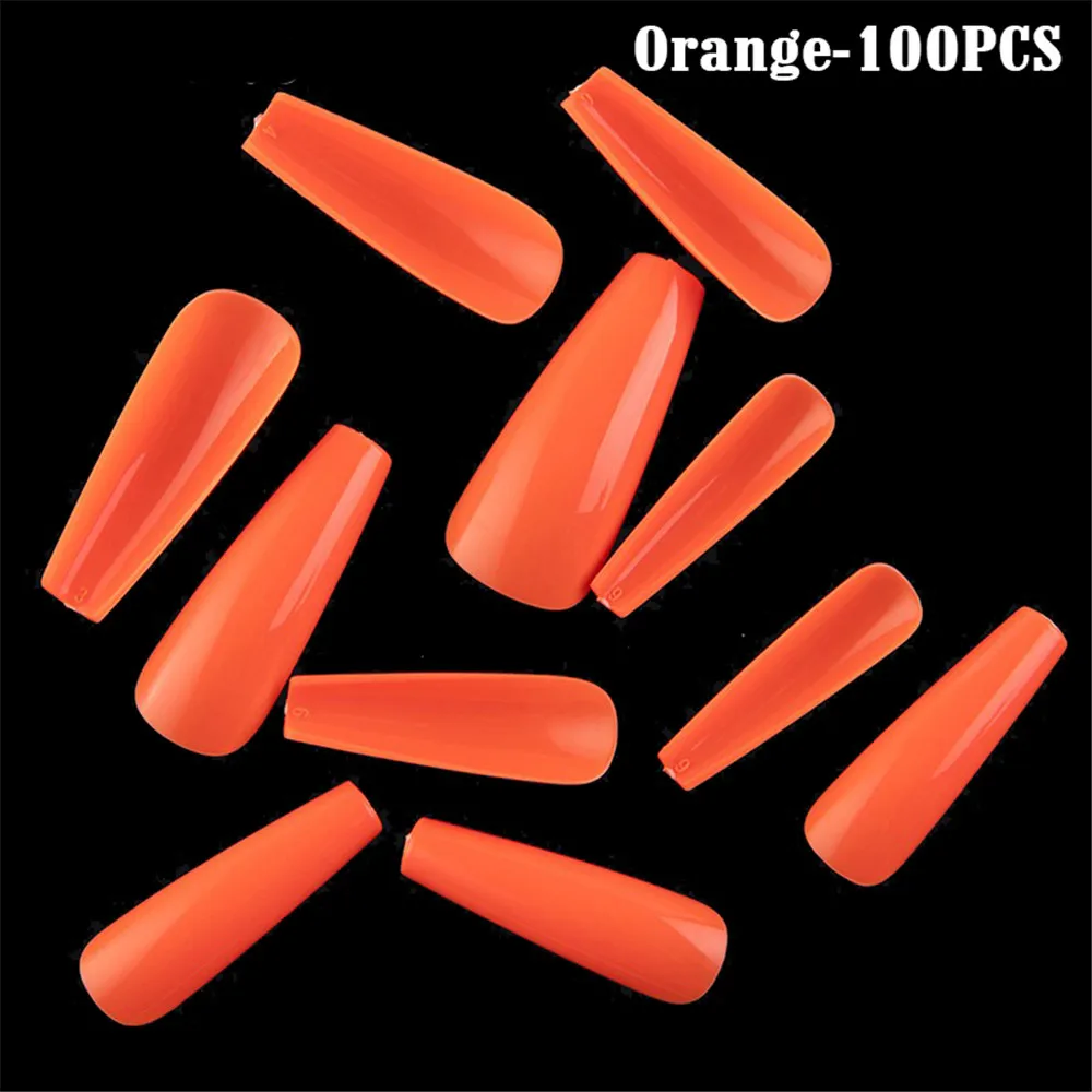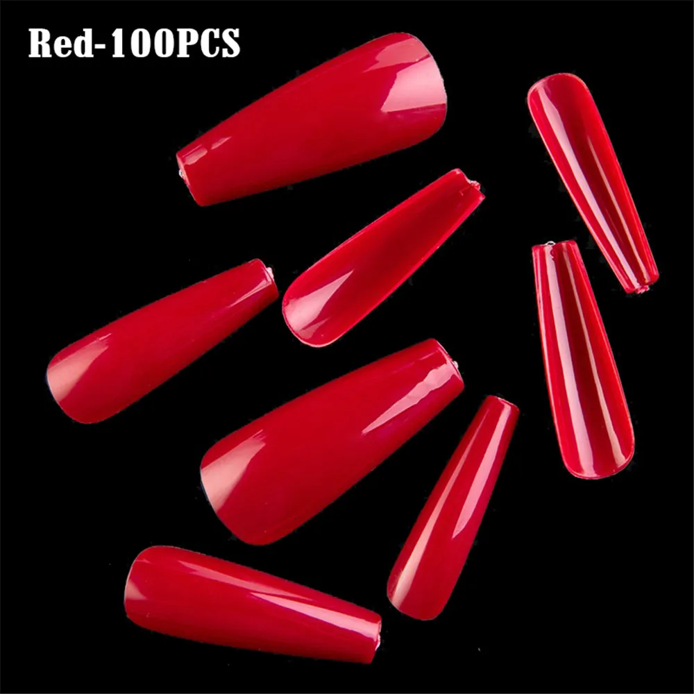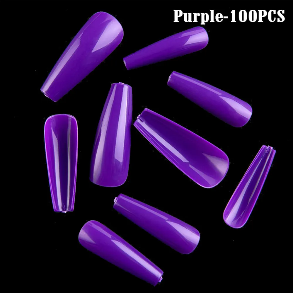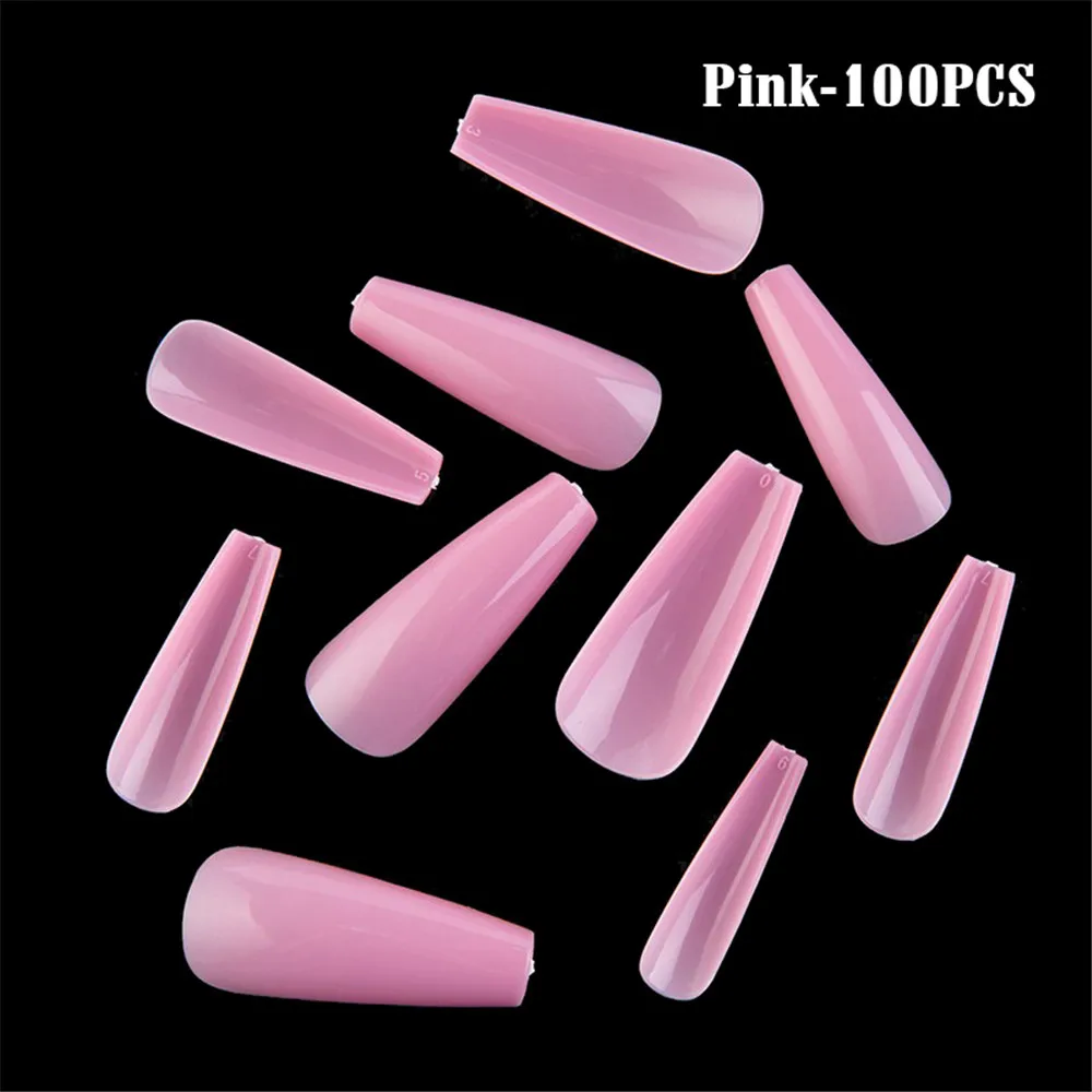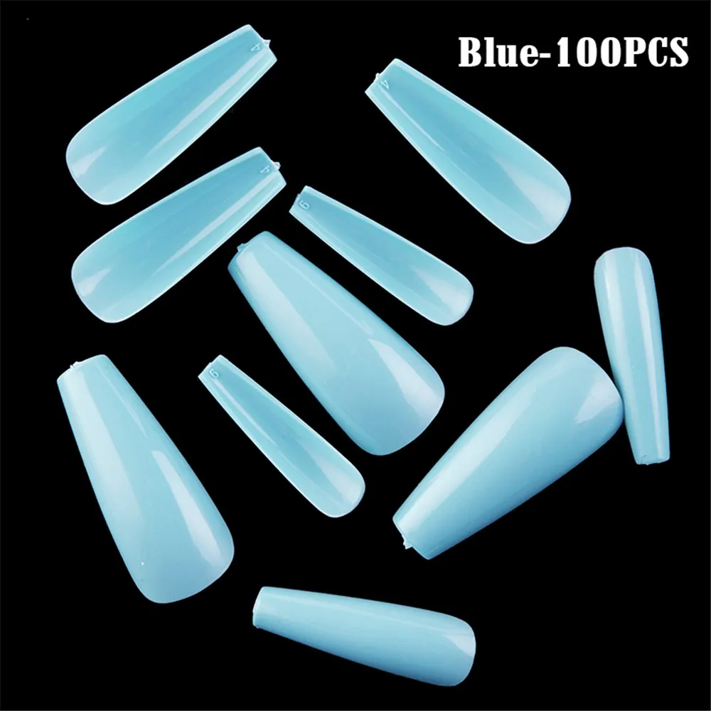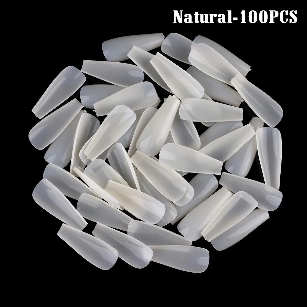 100Pcs Long Ballerina Coffin Flat French Stiletto Almond False Nail Tips