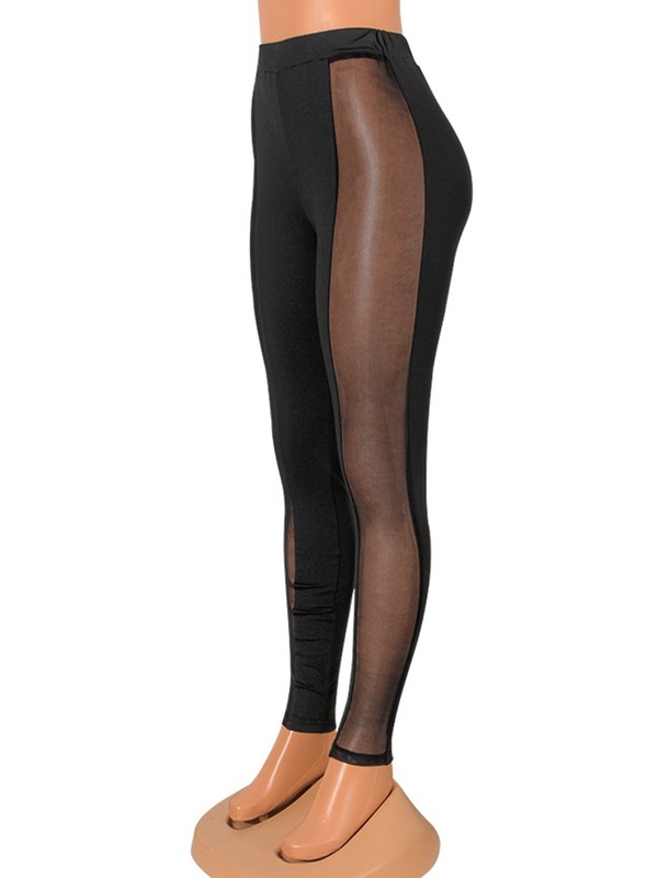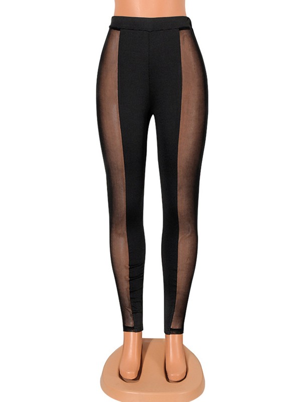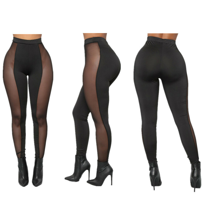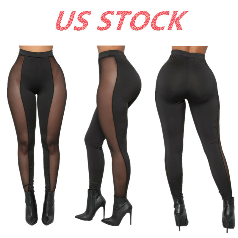 Womens See-through Mesh Patchwork Leggings High Waist Skinny Pants.