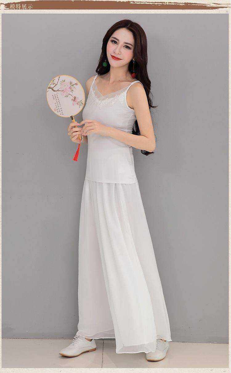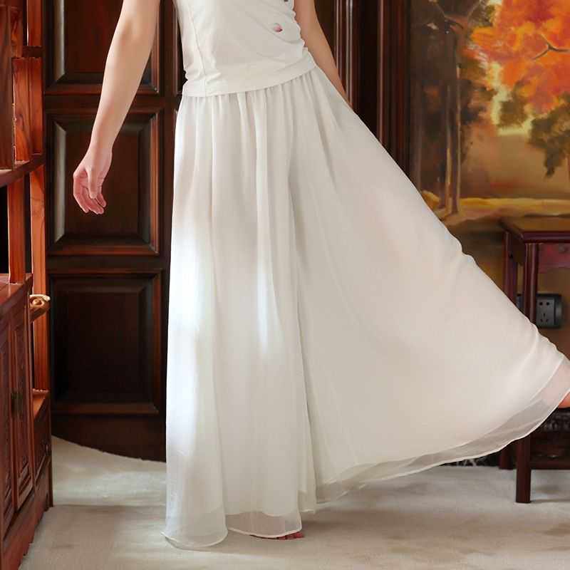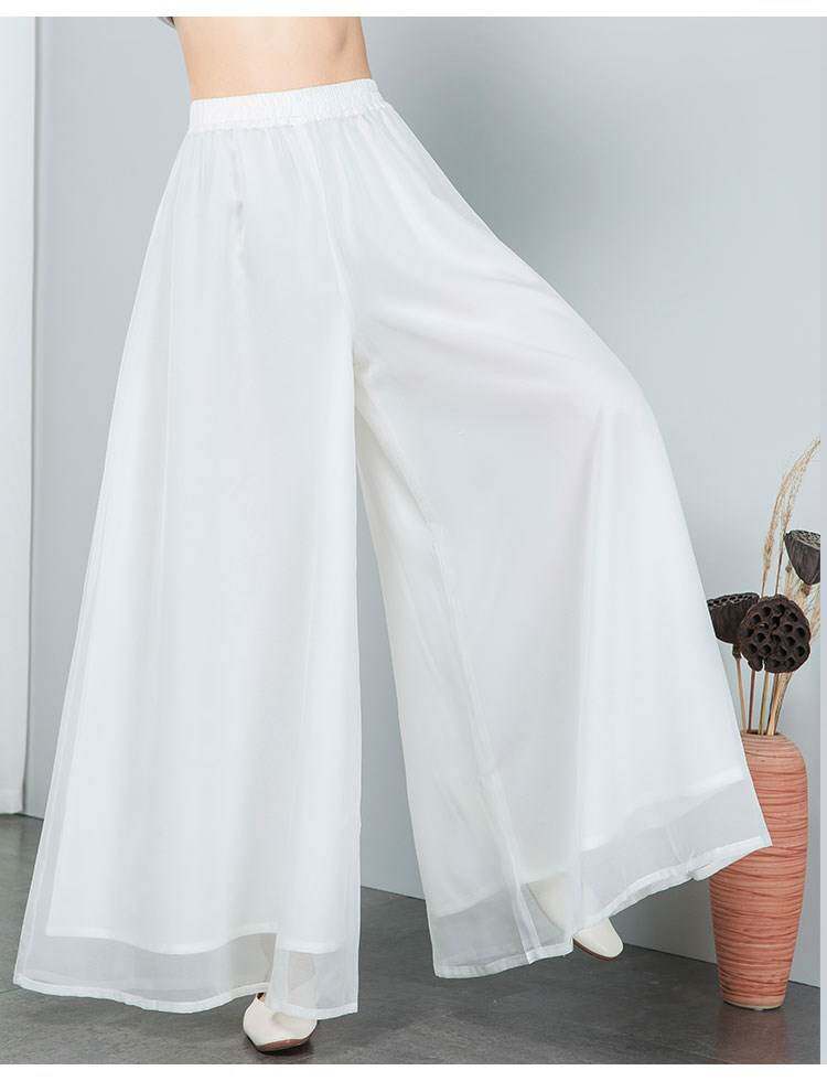 Womens Chiffon Wide Leg Pants Fall Summer Spring Clothes 2021 Elastic High Waist Casual Retro Loose Long Trousers White Black