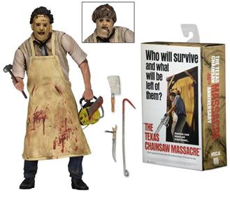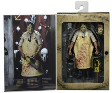 To commemorate the 40th anniversary of the original Don't Open That Door, we present the definitive collectible version of Leatherface, as it appeared in the 1974 film. The 18 cm figure gets a luxury treatment, with a completely new body with over 25 points of articulation, plus 2 equally creepy interchangeable heads. Leatherface is equipped with a chainsaw, knife, hammer, butcher hook, cleaver and a vinyl apron. Rich in detailed features and joints, it comes packaged in a deluxe box with a collector's window.