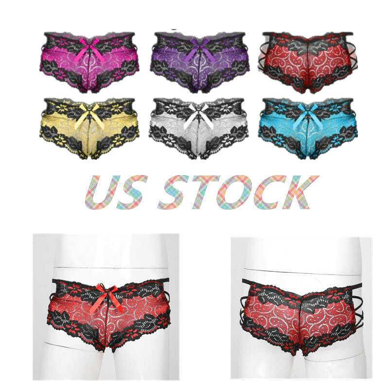 Men Sissy Satin Underwear Thong Lace Patchwork Panties G-string Briefs T-back.