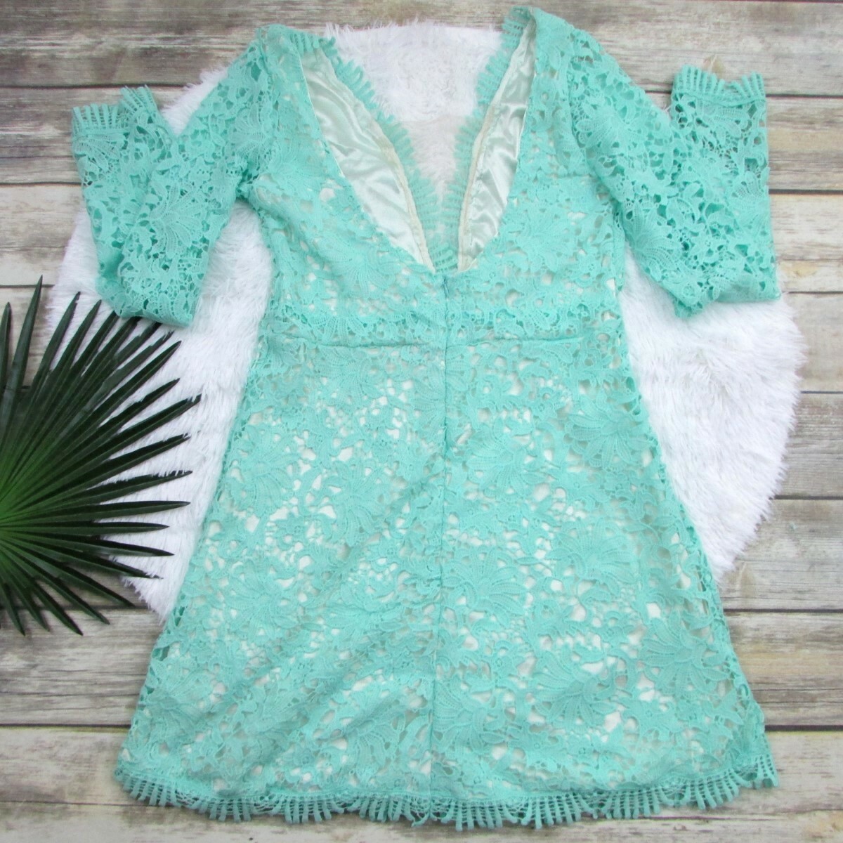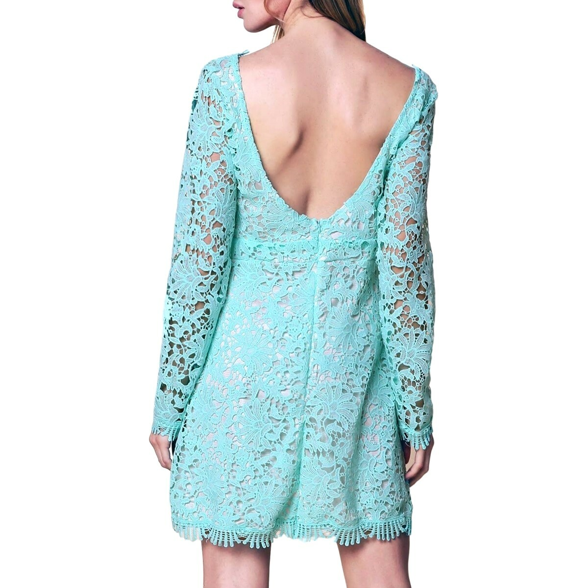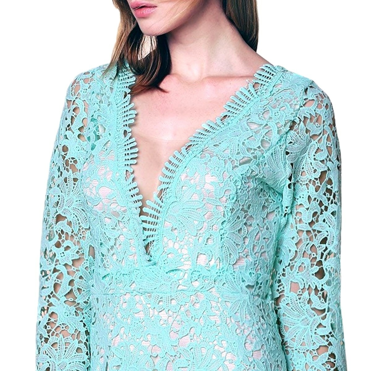 Be the center of attention in this stunning floral lace A-line dress, designed with a flattering empire waist and mesh illusion at the neckline.