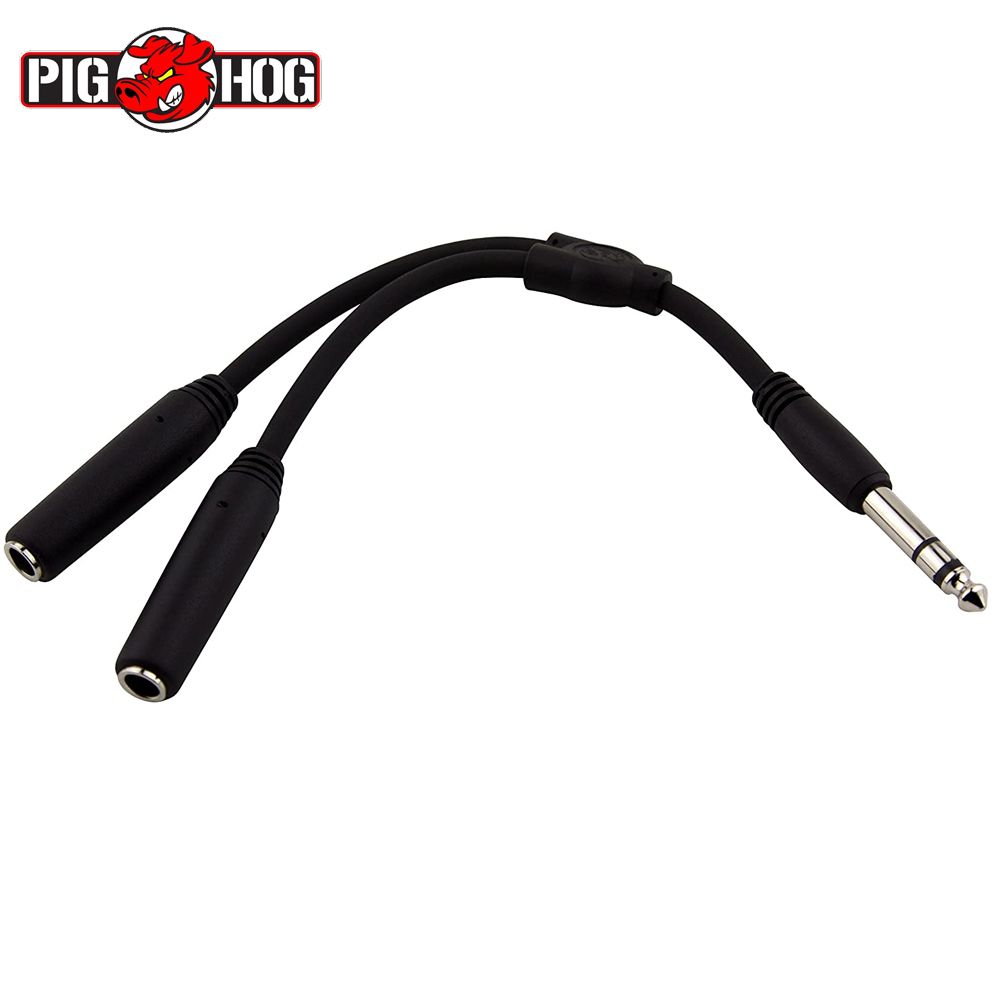 This Y Splitter can serve numerous functions; for example connecting two headphones to a single 1/4" headphone jack. This tough Y-cable features heavy duty molded connectors, our proprietary Pig Hog Splitter junction, and a tough PVC exterior.