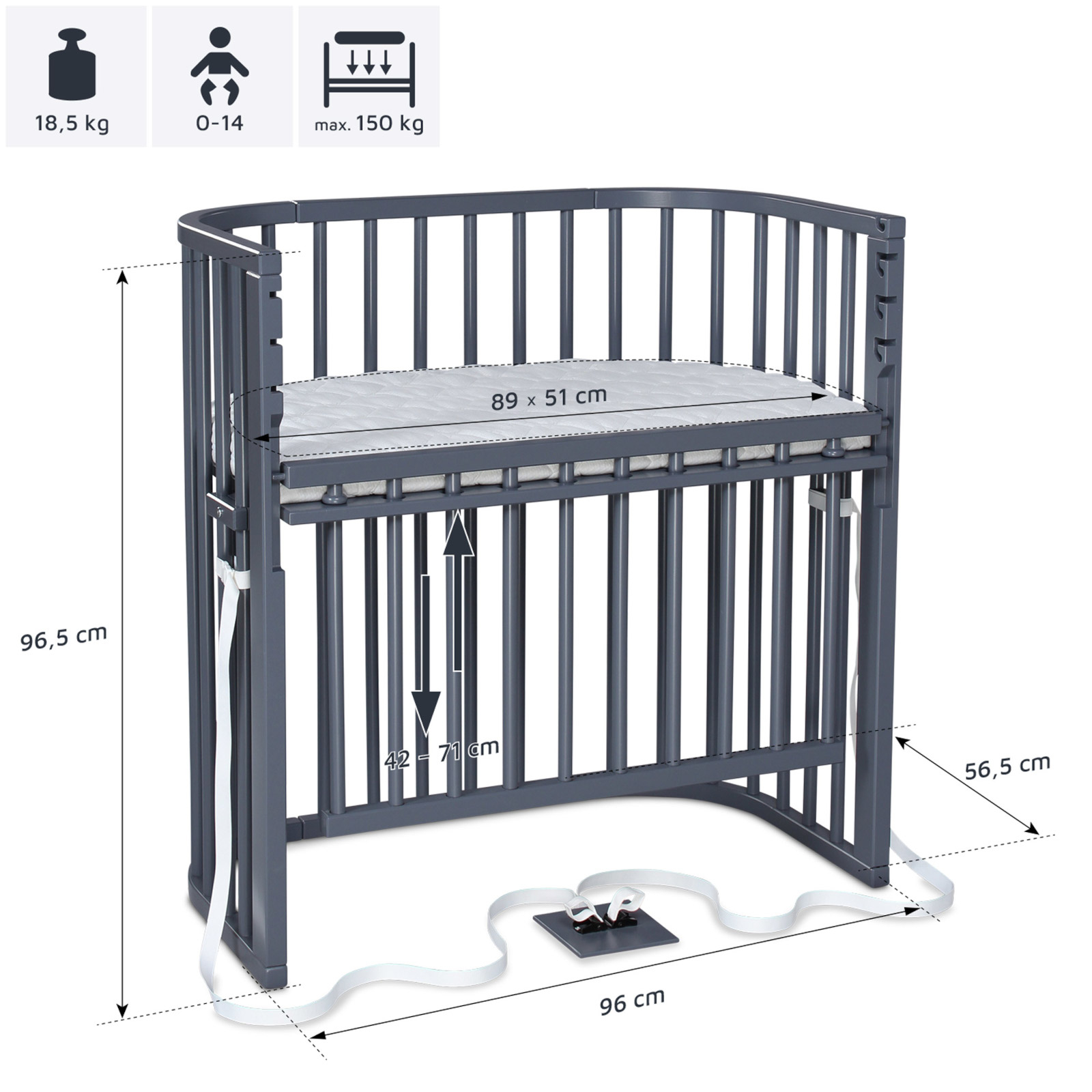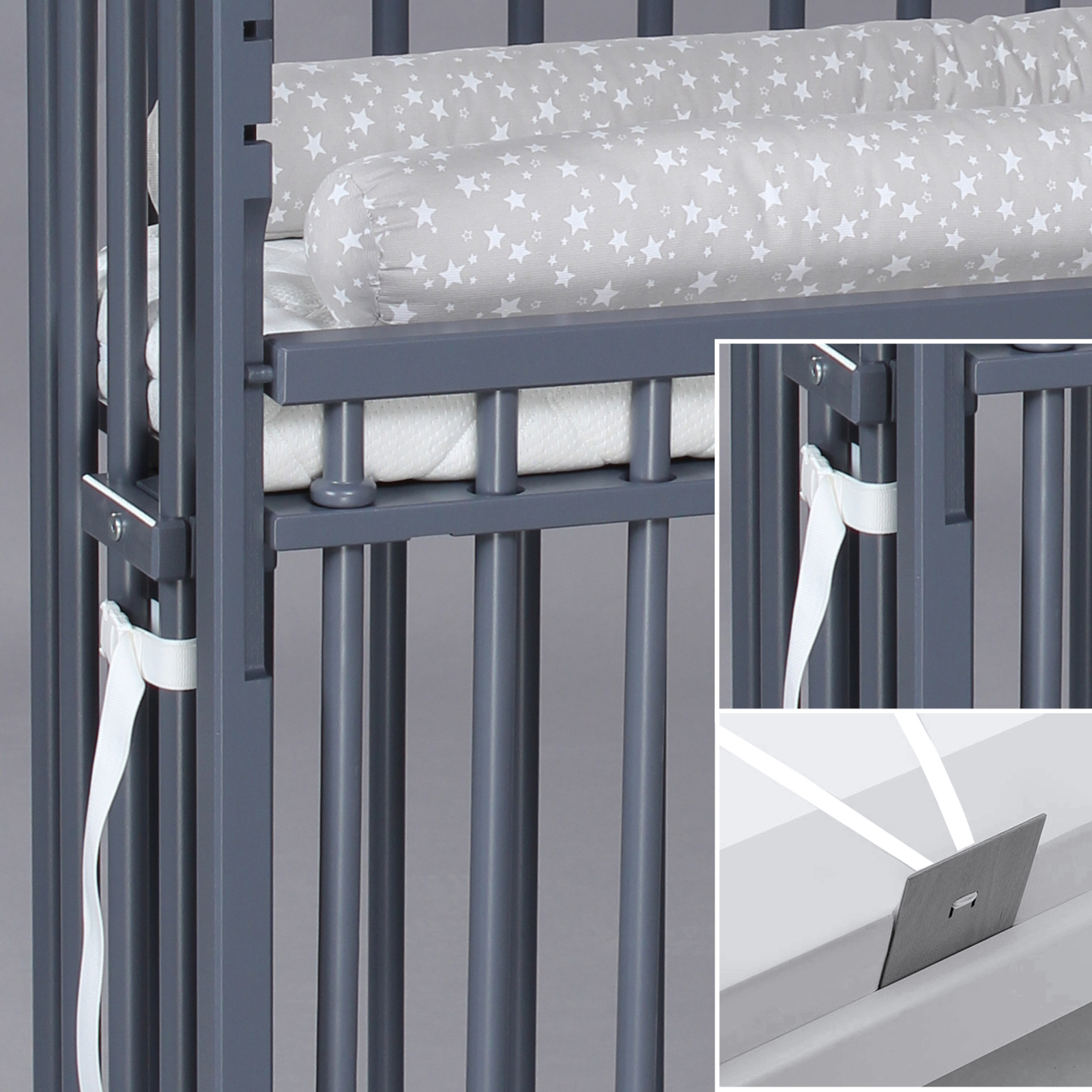 MIT INTEGRIERTEM VERSCHLUSSGITTER – Das babybay lässt sich mit nur einem Handgriff in ein vollwertiges Säuglingsbett verwandeln und ist somit auch tagsüber verwendbar. Der verstellbare Herausrollschutz macht das Beistellbett nachts noch sicherer