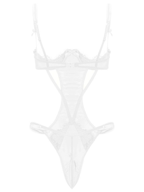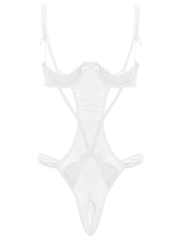 Women One-piece Lingerie Adjustable Shoulder Straps 1/4 Underwired Cups Crotchless Bodysuit Backless Nightwear.