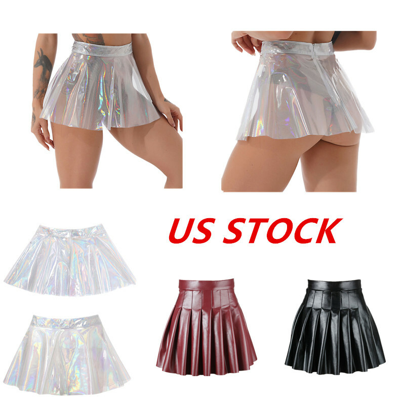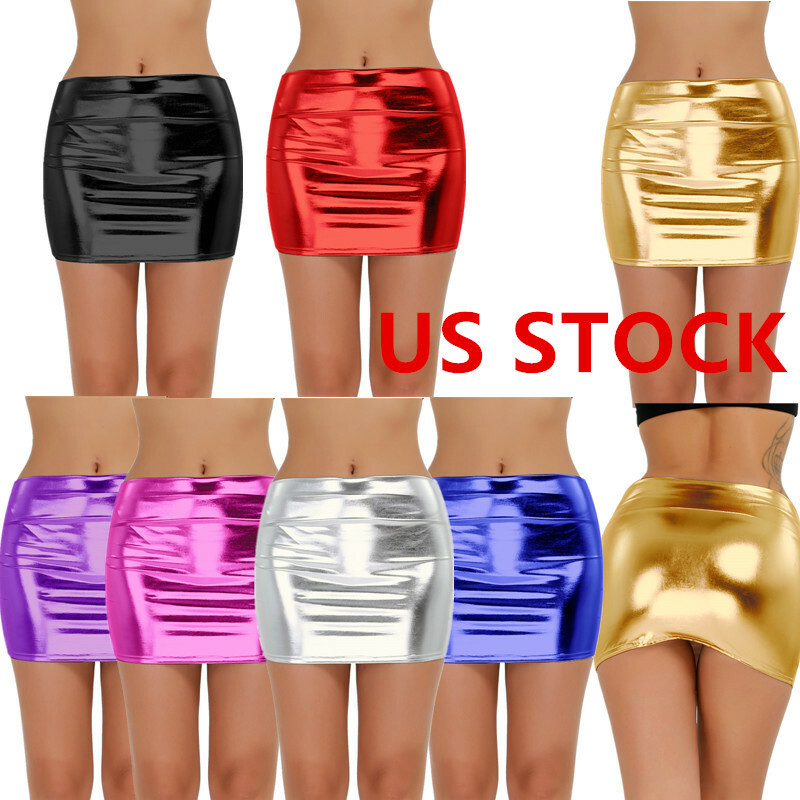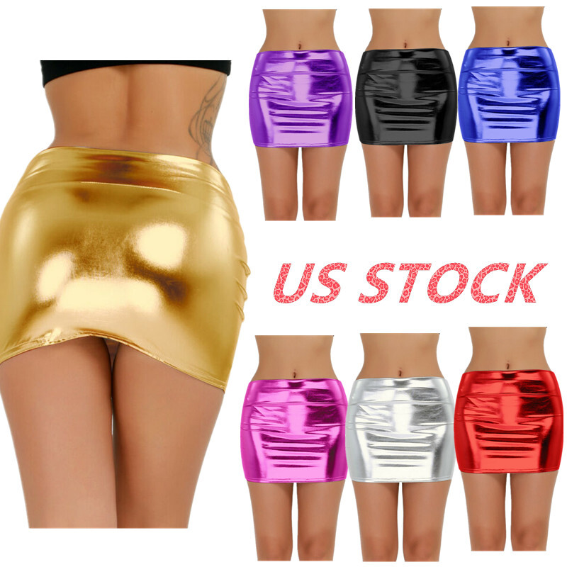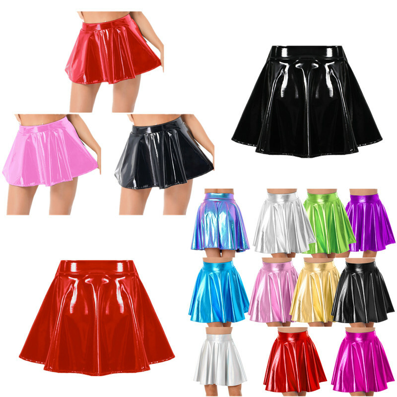 Womens Metallic Shiny Mini Skirt Elastic Waist Skirts for Nightclub Rave Party Festival.