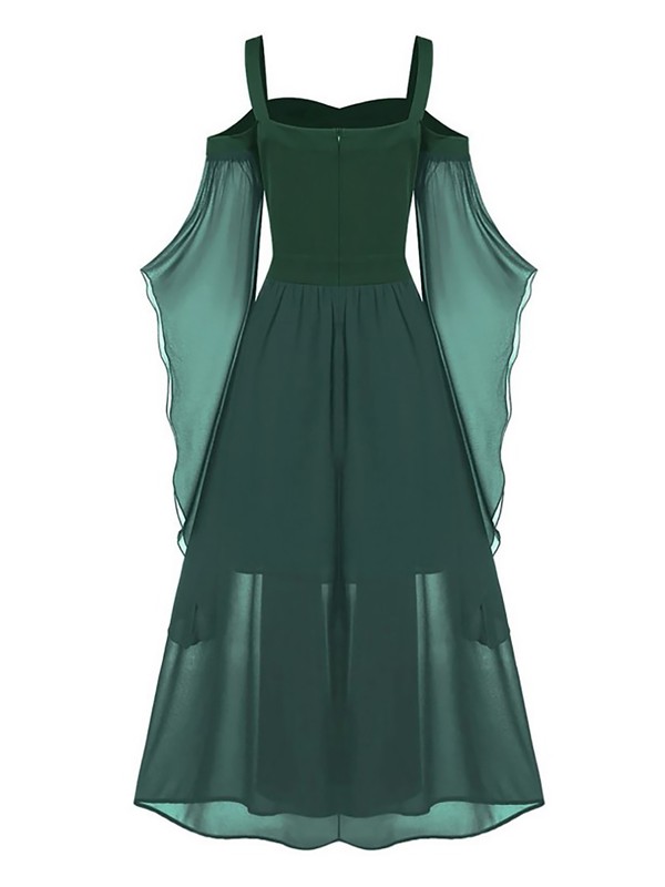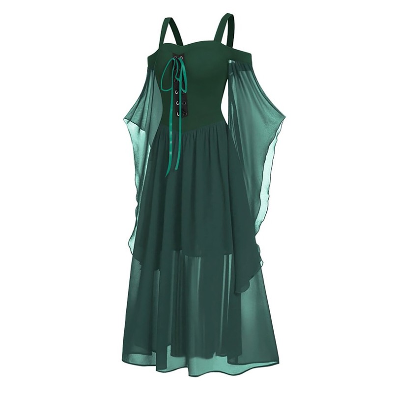 Flared sleeve dress for women, wide shoulder straps for comfy fit.