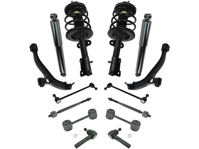 Package Contents: (2) Front Lower Control Arms with Ball Joints; (2) Front Sway Bar Links; (2) Front Outer Tie Rods; (2) Rear Shock Absorbers; (2) Front Strut & Spring Assemblies; (2) Front Inner Tie Rods; (2) Rear Sway Bar Links