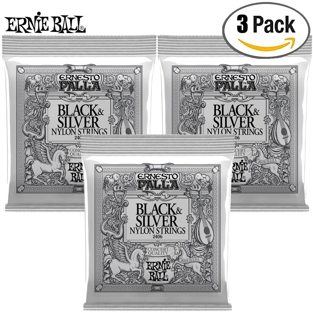 3-PACK Ernie Ball 2406 Ernesto Palla Black/Silver Nylon Classical Guitar Strings Medium