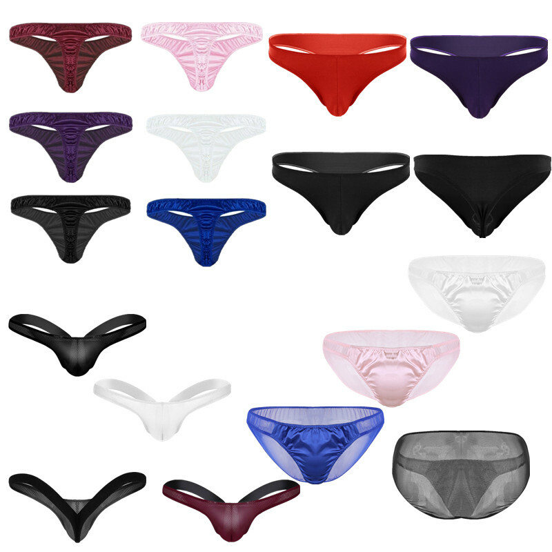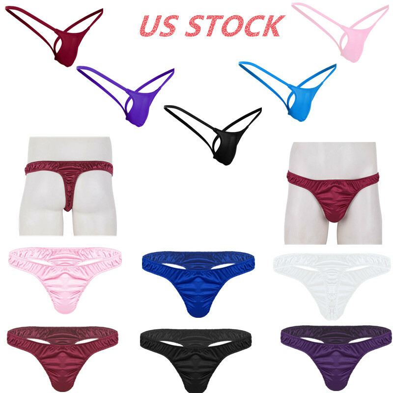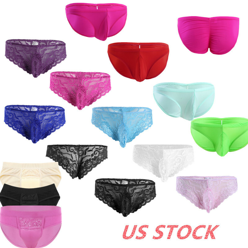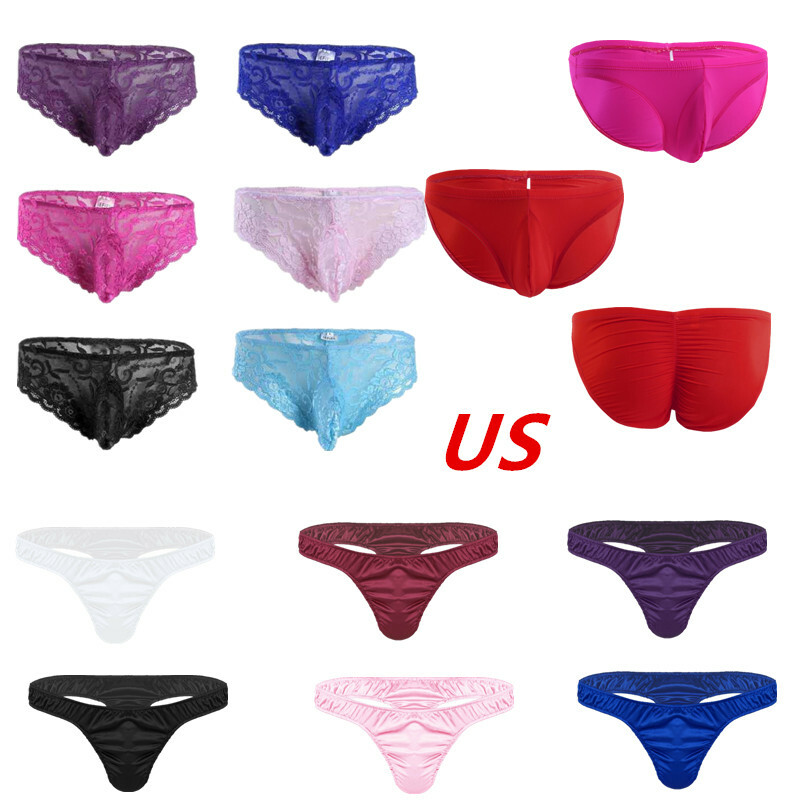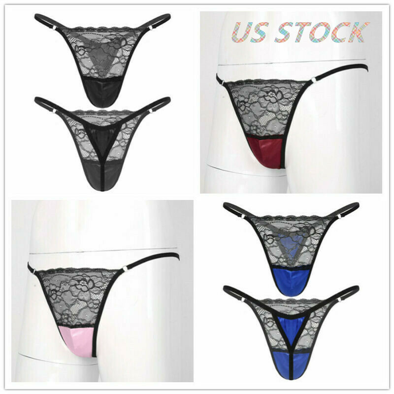 Men Sissy Satin Underwear Thong Lace Patchwork Panties G-string Briefs T-back.