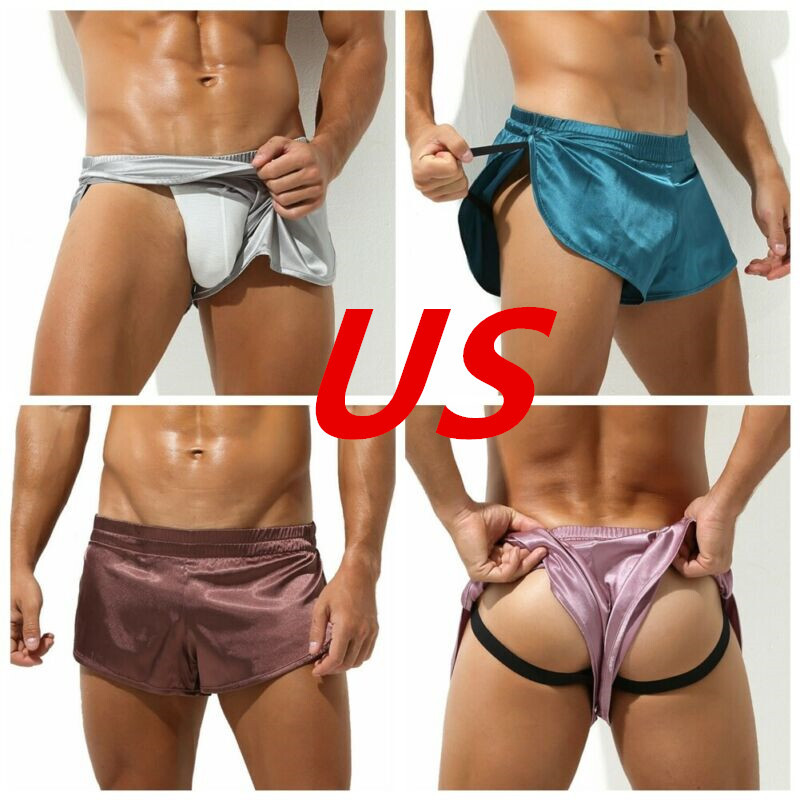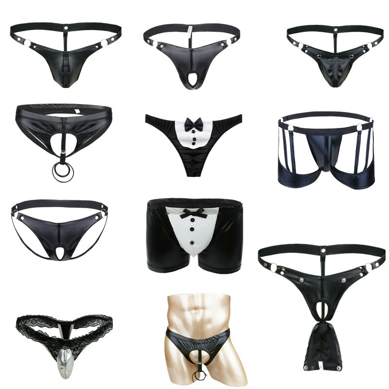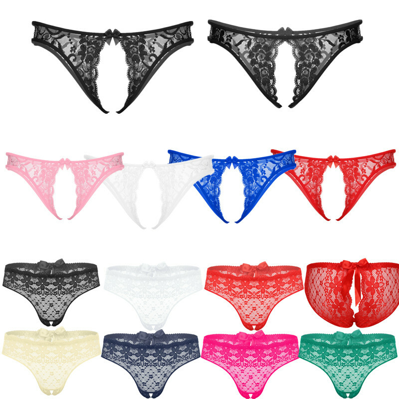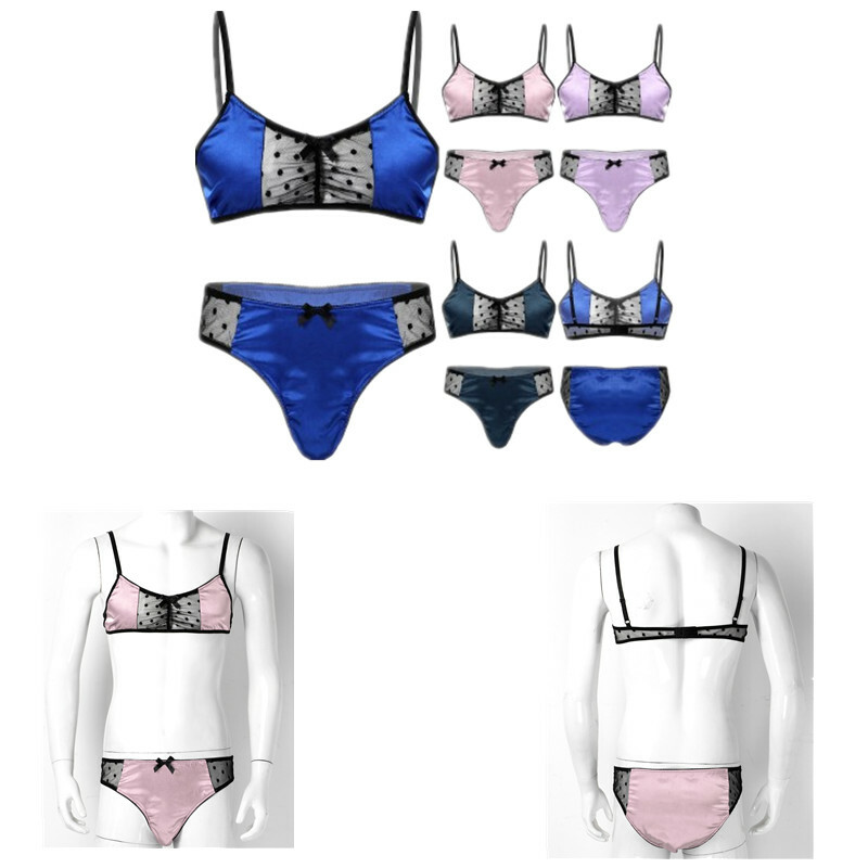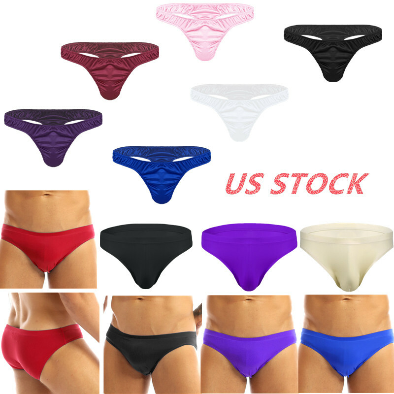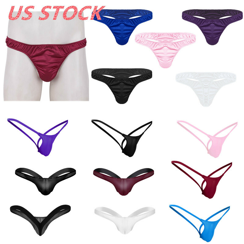Men Sissy Satin Underwear Thong Lace Patchwork Panties G-string Briefs T-back.