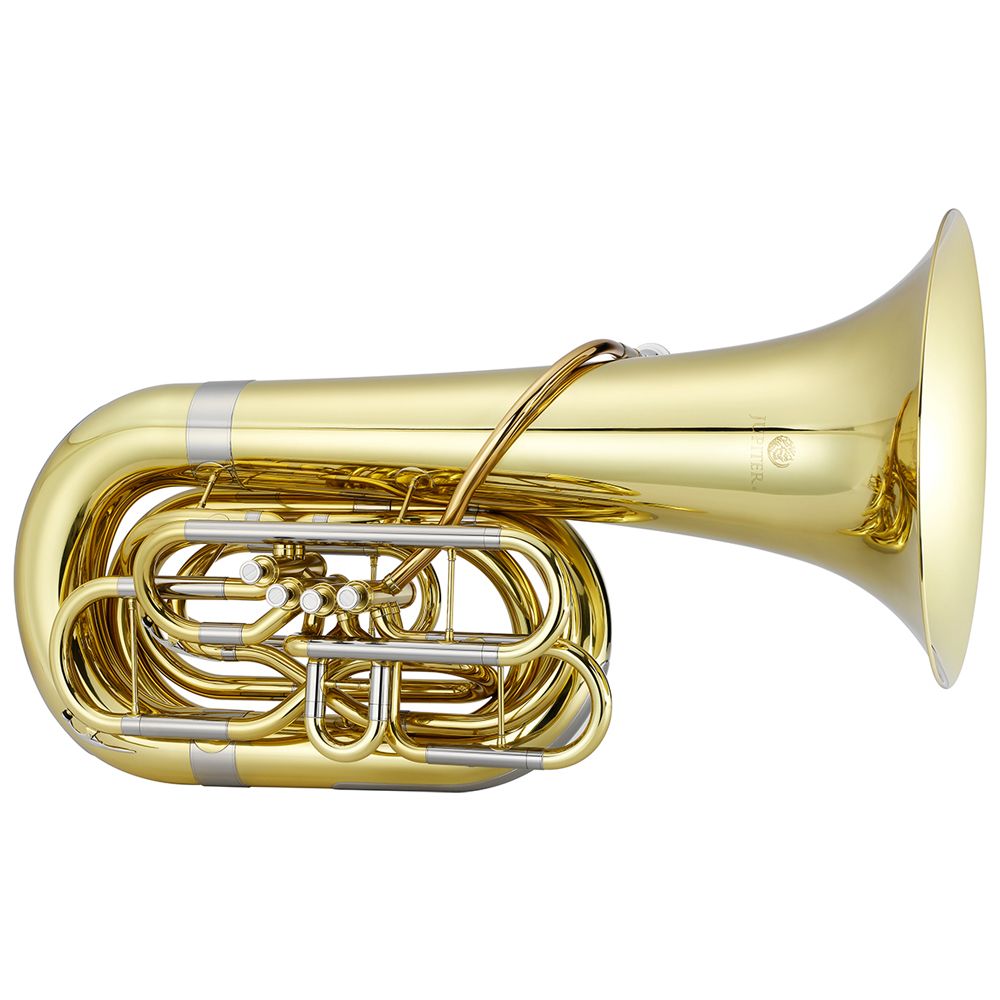 With it's big bore, big bell, and 4 front-piston valves, the innovative design of the Jupiter JTU1110 tuba is unique. The valve tubing is an open wrap, unlike anything seen before on the market. The 4 front-action piston valves have a moderate throw due to the good sized bore of the instrument.