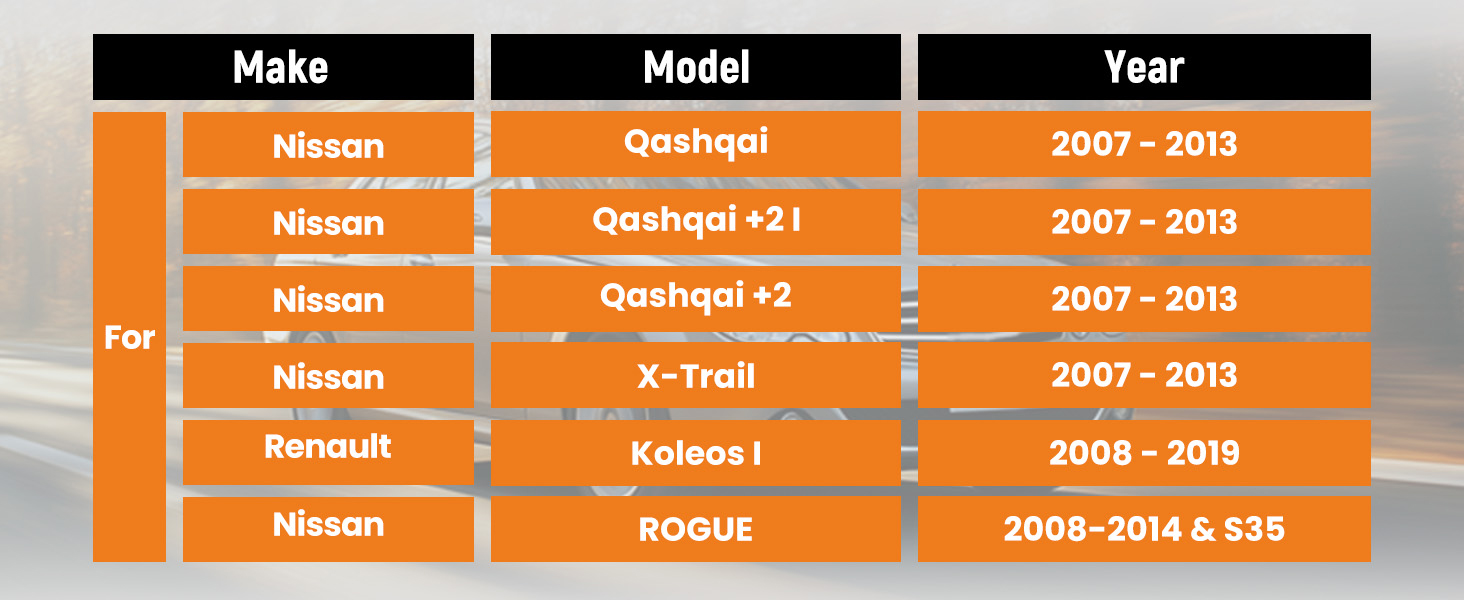 | For Nissan | X-Trail | 2007/06-2013/11 | T31 | 2.5 4x4 | 2488 ccm, 124 KW, 169 PS | EBay compatibility is for reference only. Please check the dimensions before the purchasing. |