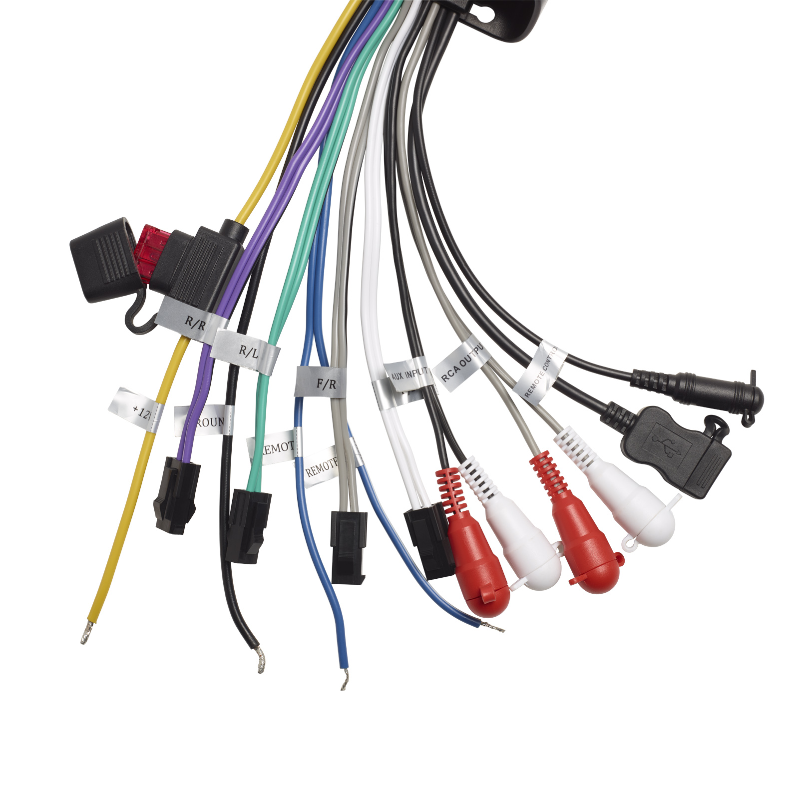 Convenient Controls. Wired remote control, capable of flush mount or underhung dash installation, allows Bluetooth pairing, volume control, play/pause, and track forward/back.