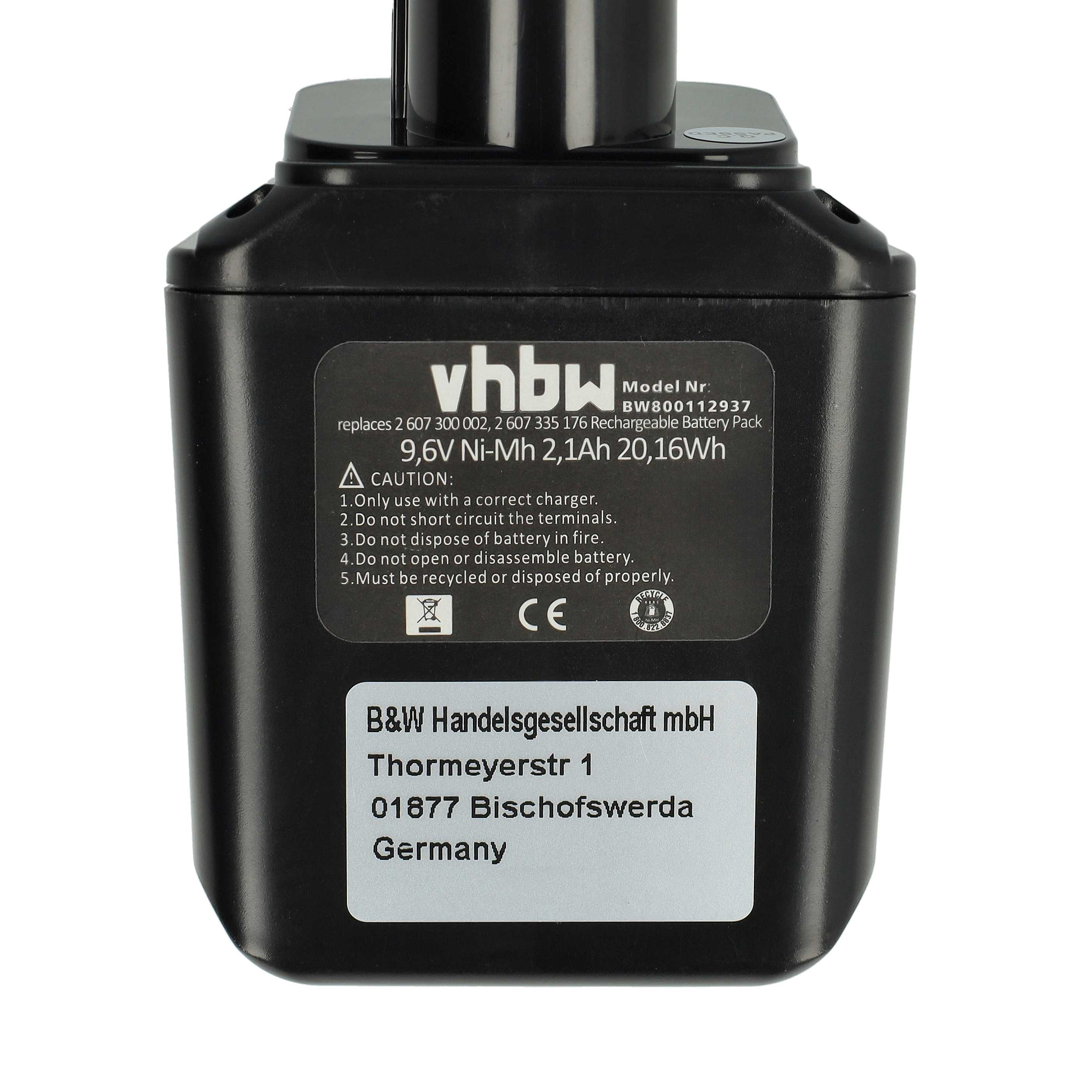 vhbw leistungsfähiger Akku als Ersatz für Bosch 2607300002, 26073000002, 2607335012, 2607335069 Akku für Akkuschrauber, Bohrmaschine / 9,6 V NiMH Akku; 2100 mAh